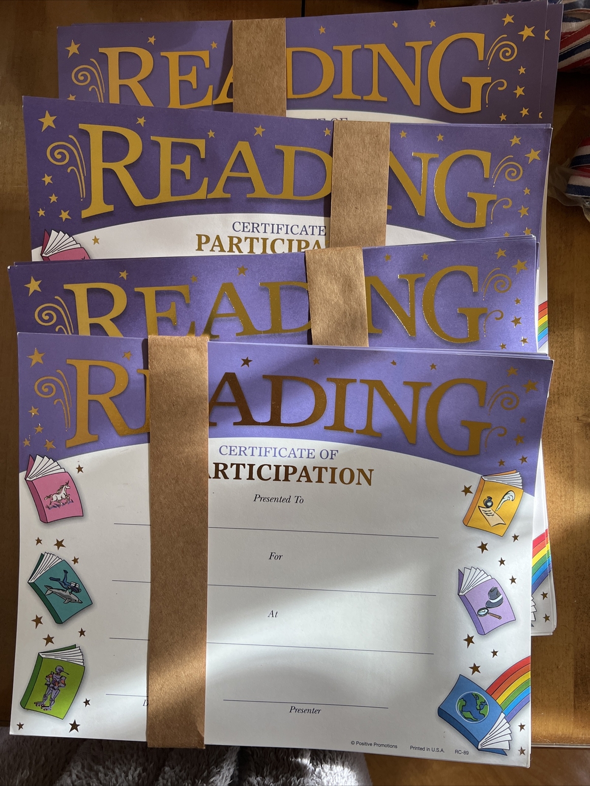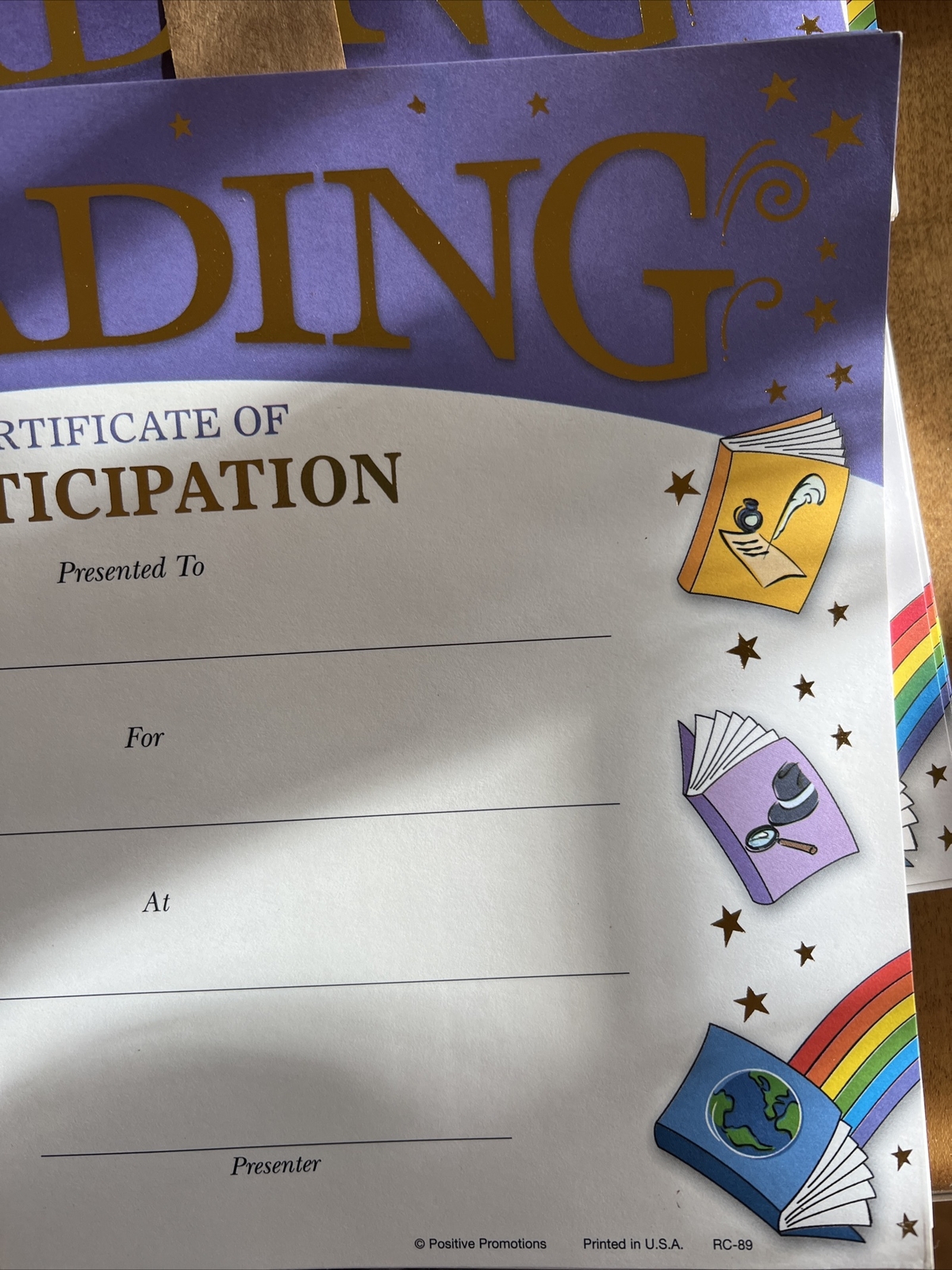 4 Packs Reading Certificate of Participation 25 Per Pack 100