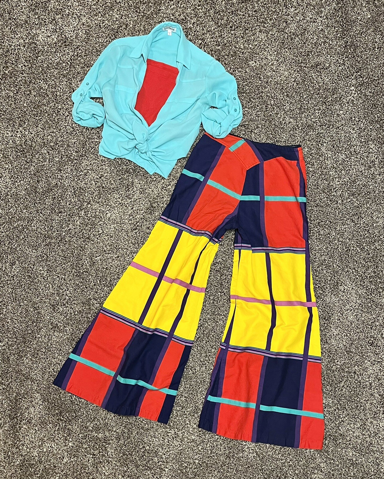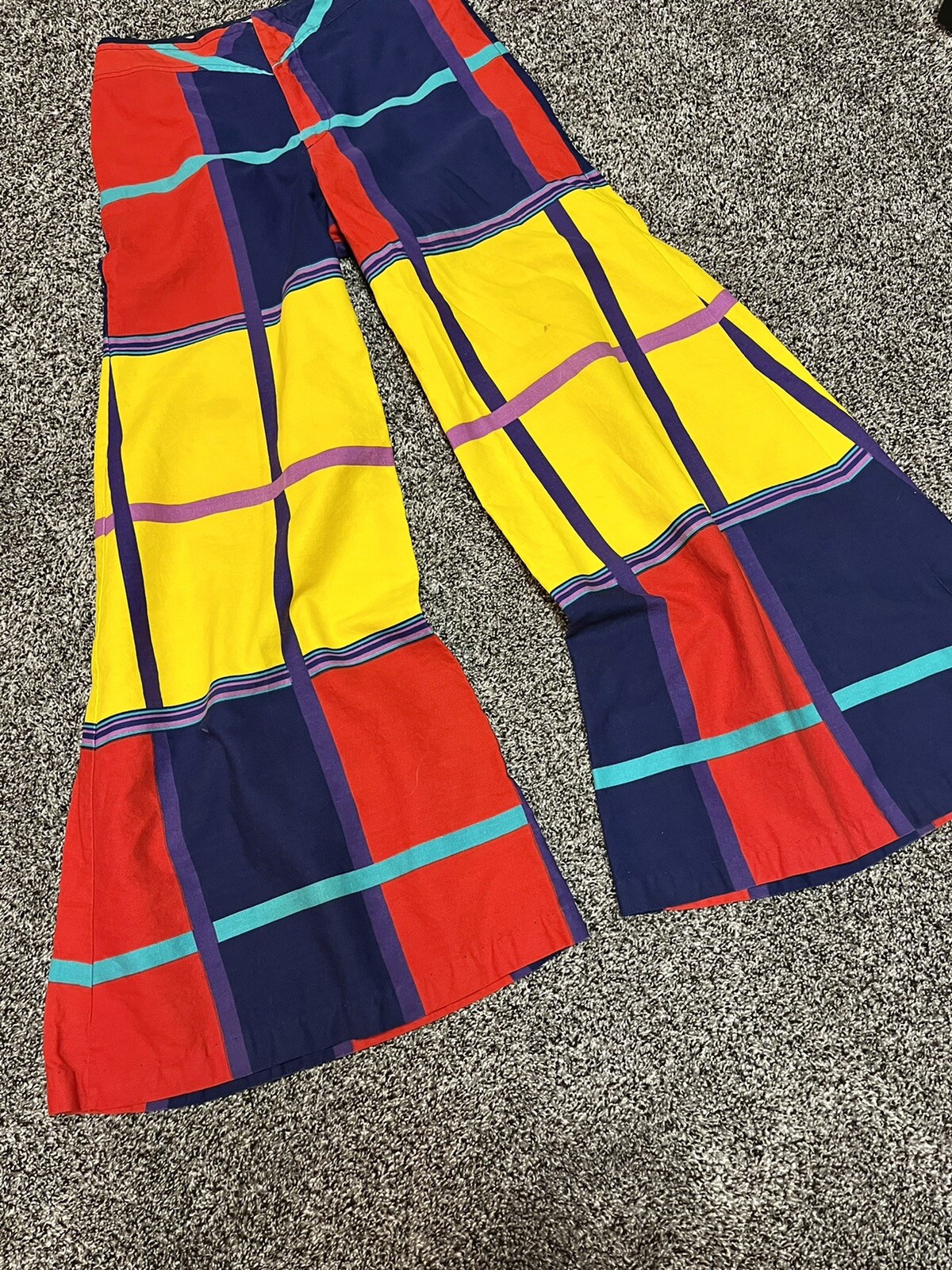 RARE Vintage 70s High Waist Pop Color Block Wide Bell Leg Pants USA Made Size S