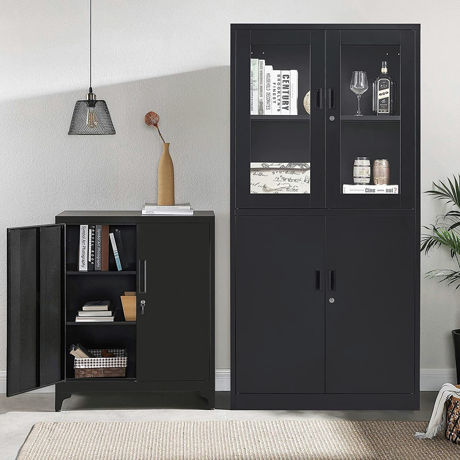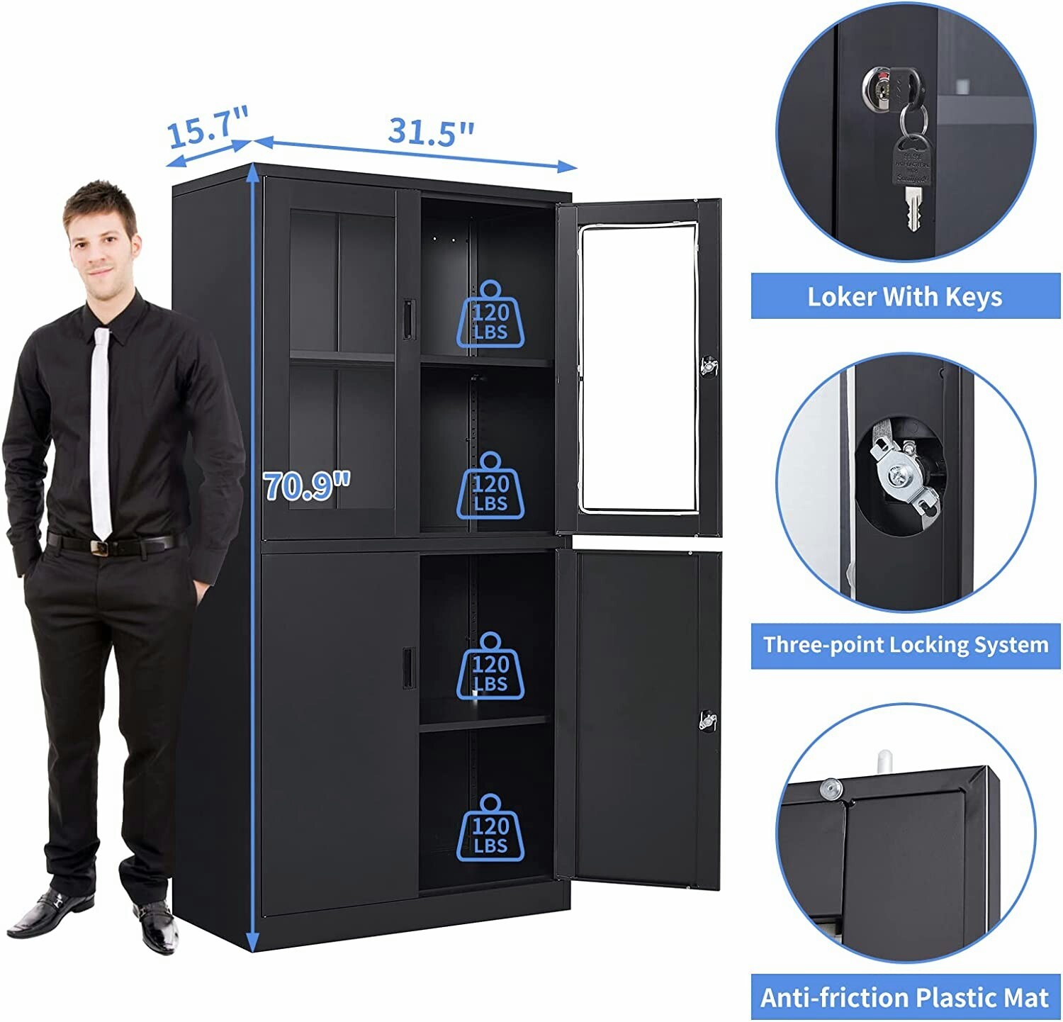 71 Locking Display Cabinet 4 Doors Tall Steel Cabinet Locker for Home Office