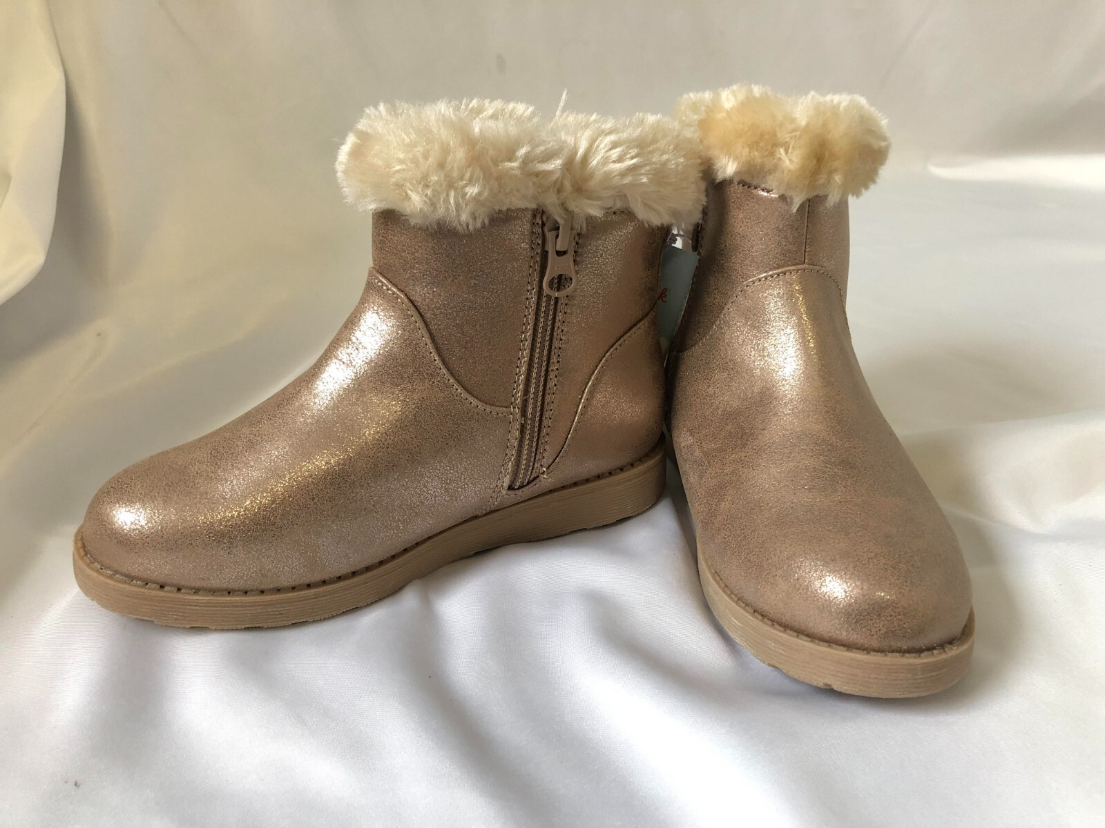 Cat Jack Girls Mila Shearling Style Boots Faux Fur Gold Zip Round Toe - New