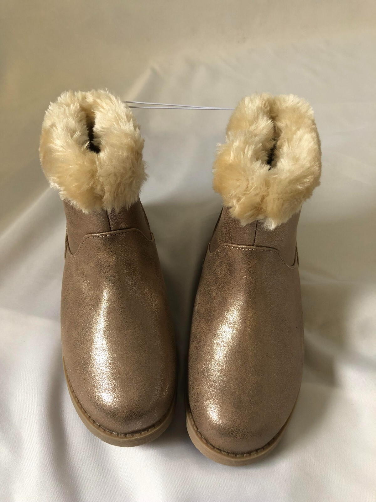 как выглядит Cat Jack Girls Mila Shearling Style Boots Faux Fur Gold Zip Round Toe - New фото