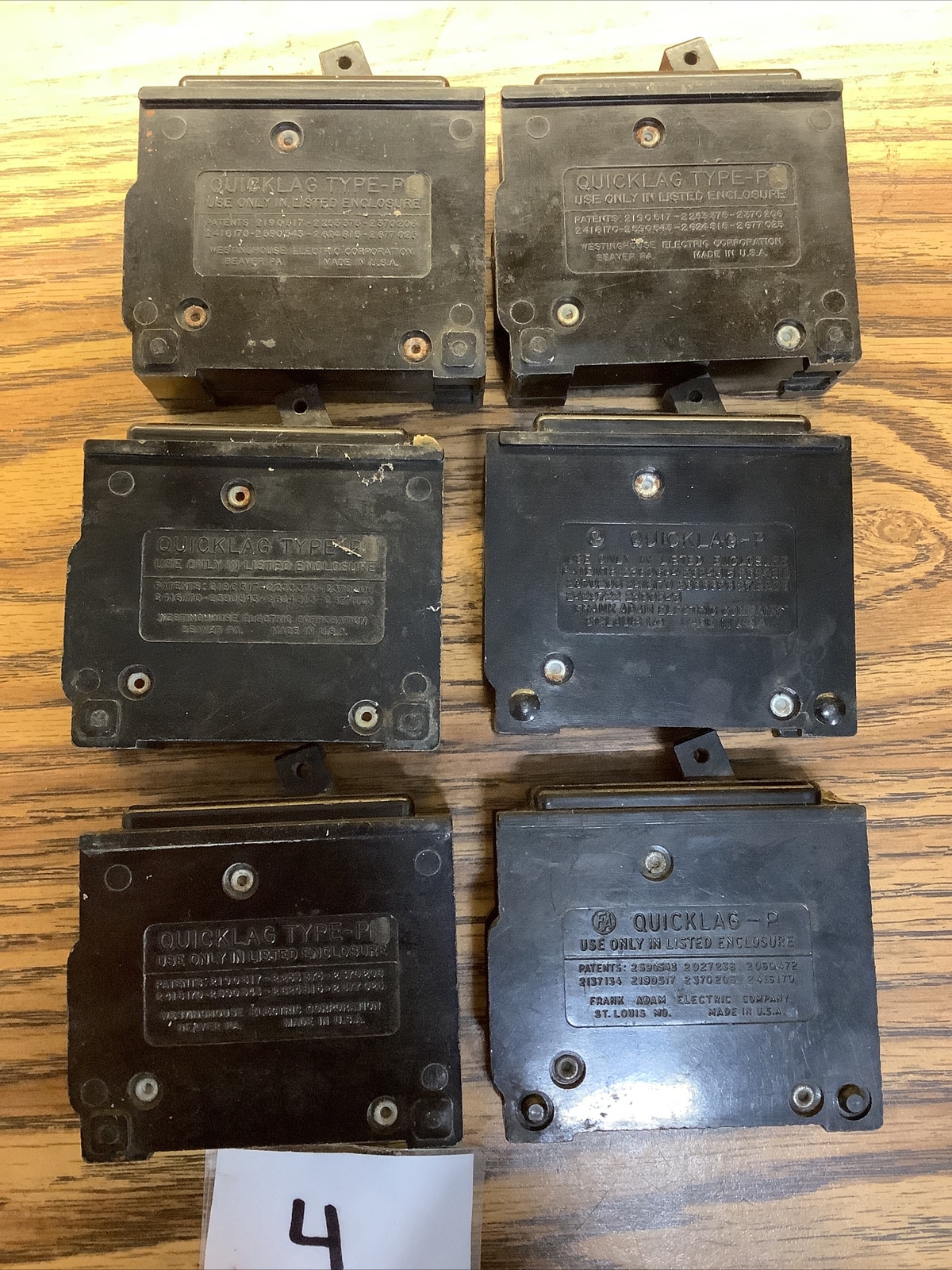 Lot of 6 Westinghouse Type P P120 20 amp Single Pole Breakers
