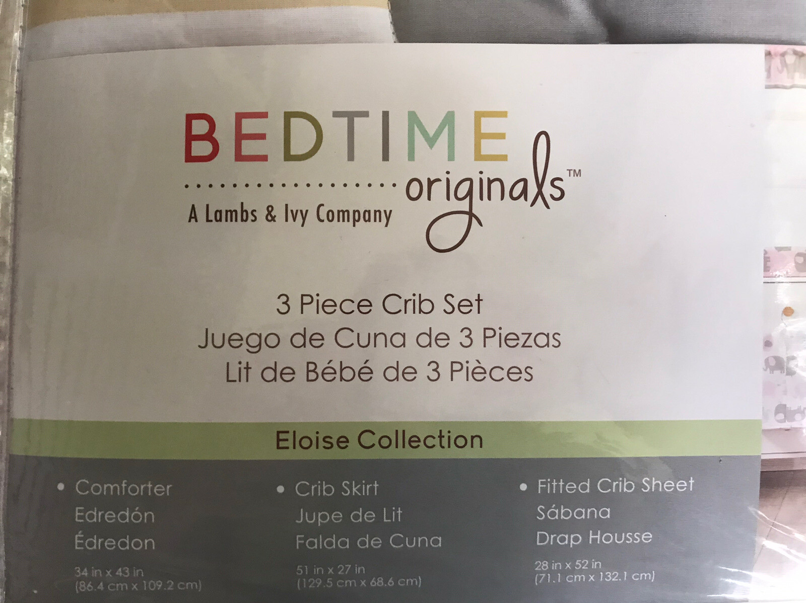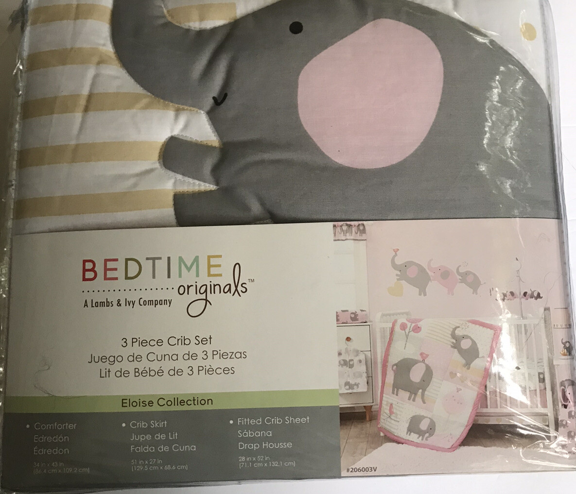 как выглядит Bedtime Originals Eloise 3-Piece Crib Bedding Set - Pink, Gray, White, Animals фото