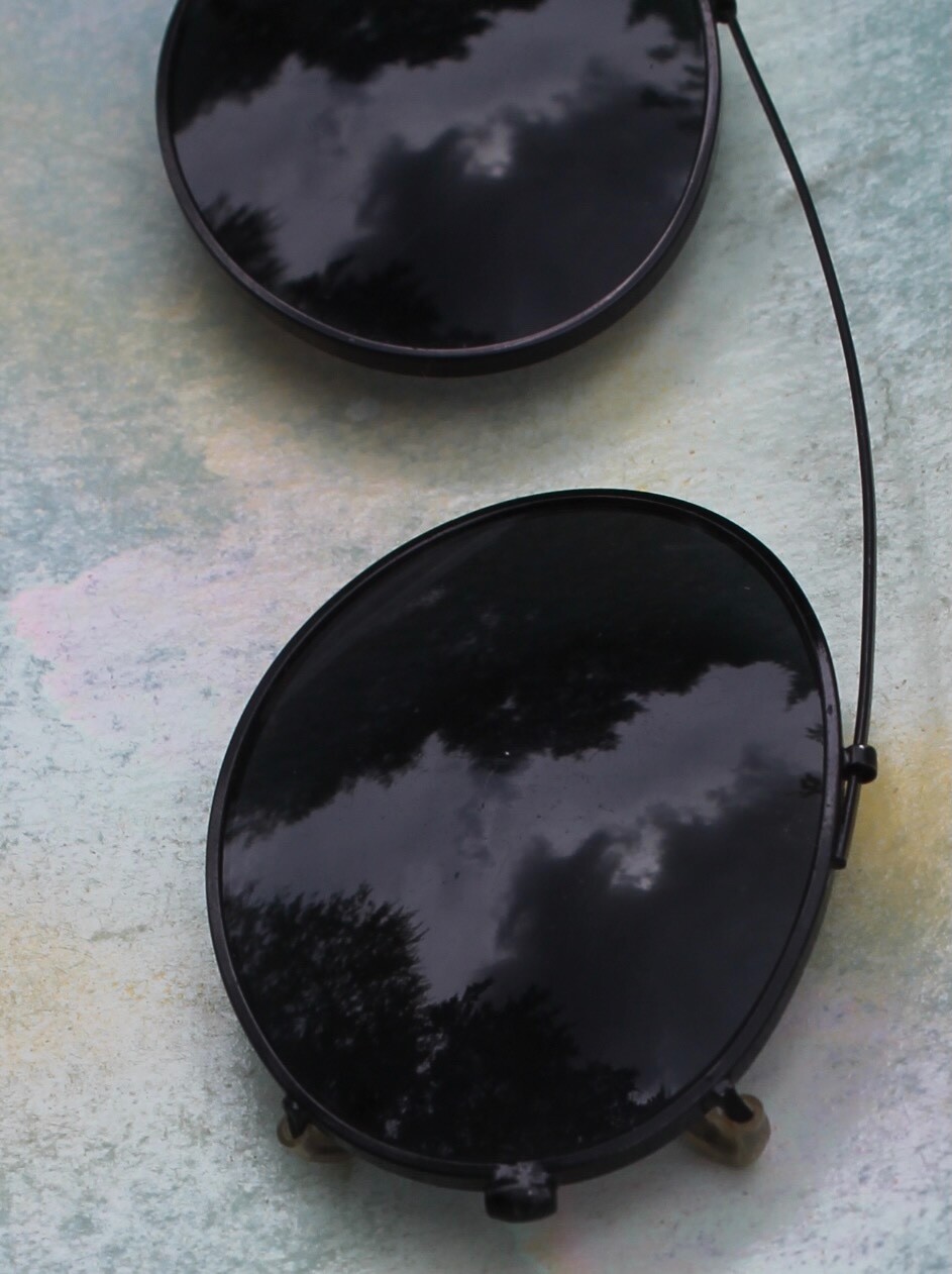 VTG Clip-On Sunglasses Over Glasses 1970 s, 5 long x 1.5 tall