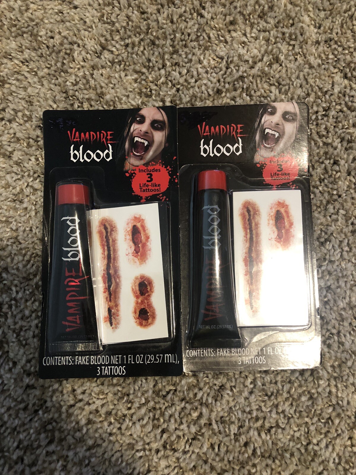 как выглядит 2X Halloween Vampire Blood Includes 3 Life-like Tattoos - Zombies Cosplay NEW фото
