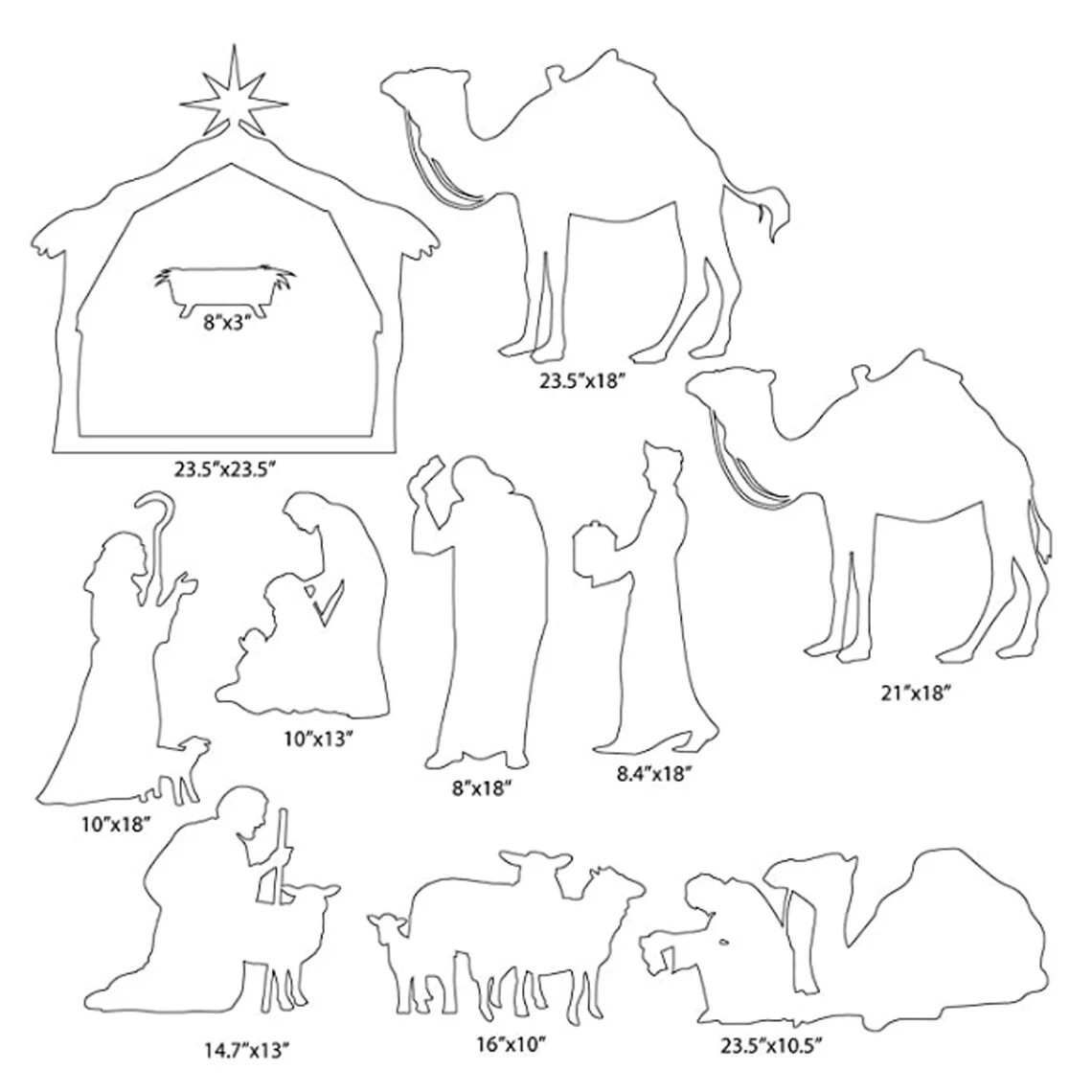 Corrugated Plastic White Silhouette Nativity Christmas Yard Signs