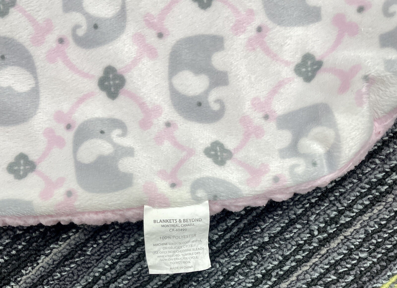 Blankets Beyond Pink Gray White Blanket Elephant Soft Plush Fleece 28 X 30 in