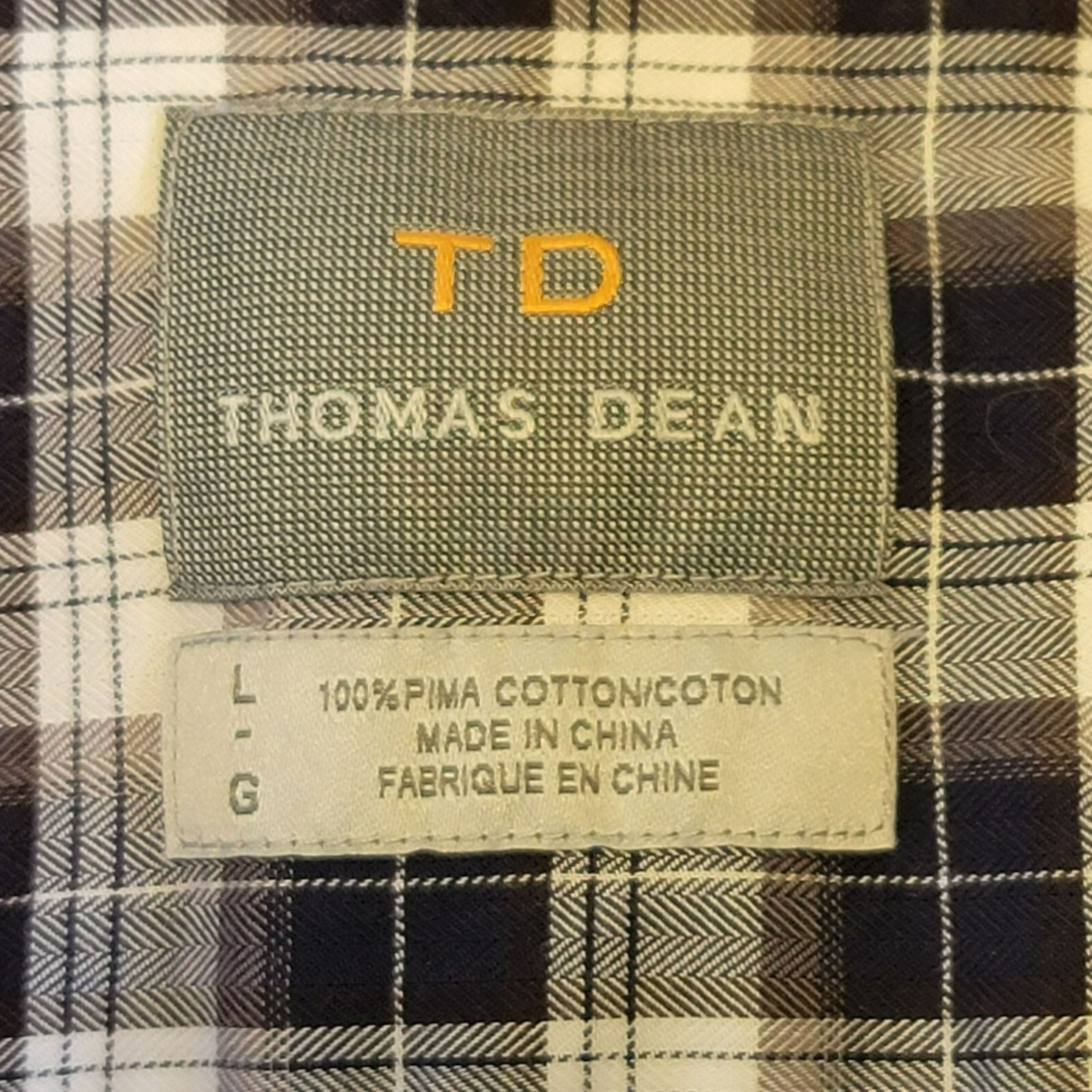 Thomas Dean Men's L Dress Shirt Navy White Check Button Down Shirt EUC