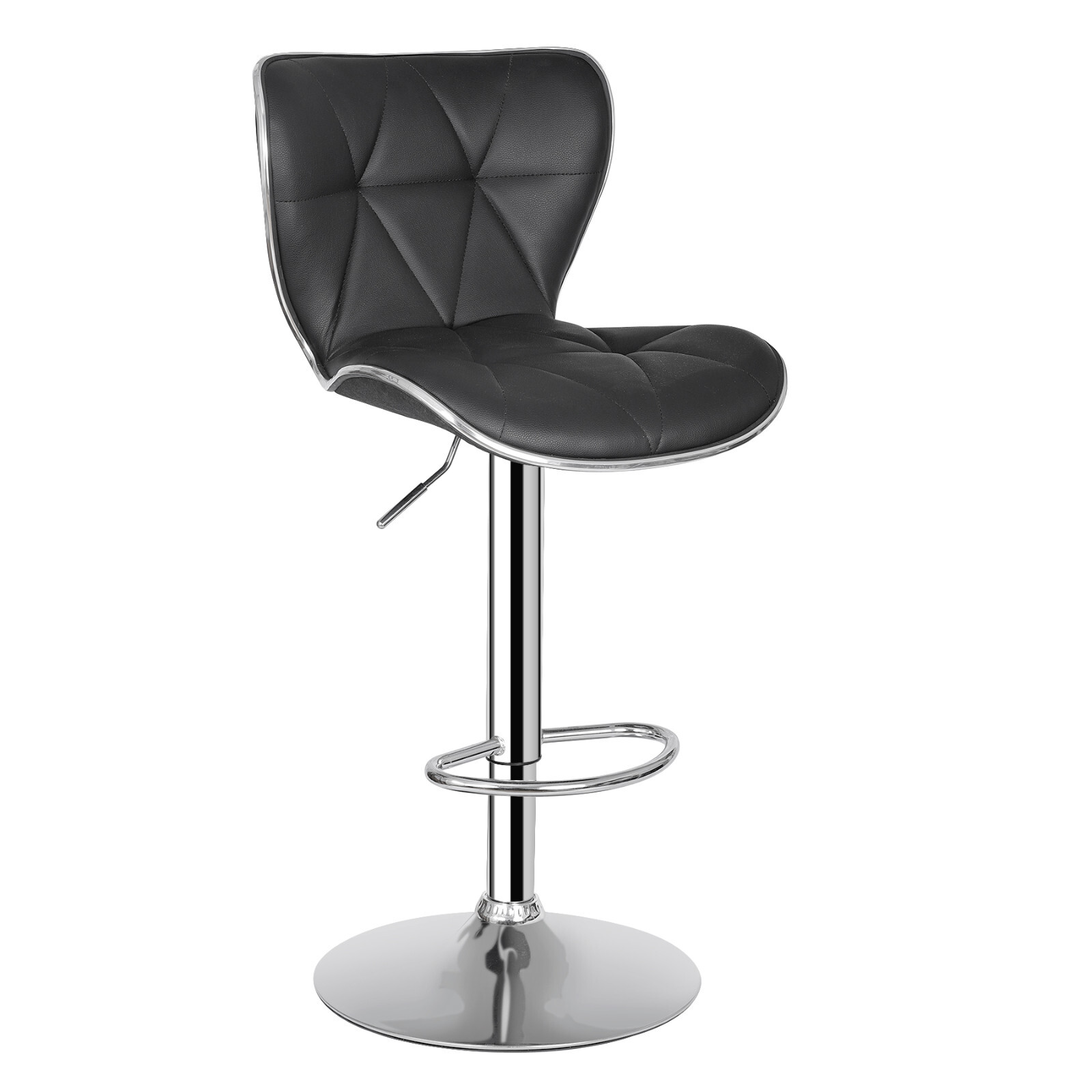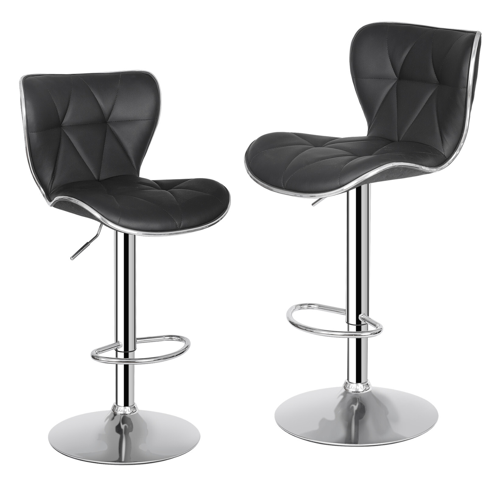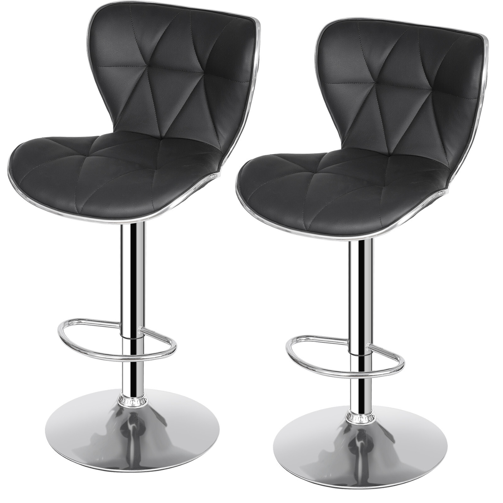 Shell Back Bar Stools Set of 2 Black PU Leather Bar Stools with Footrest