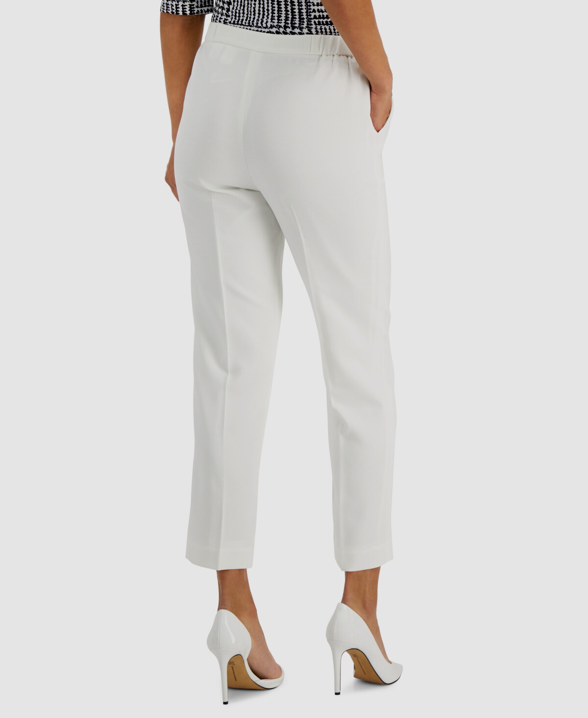 79 Kasper Women's White Slim Pleated Front Straight Cropped Leg Pants Size 12