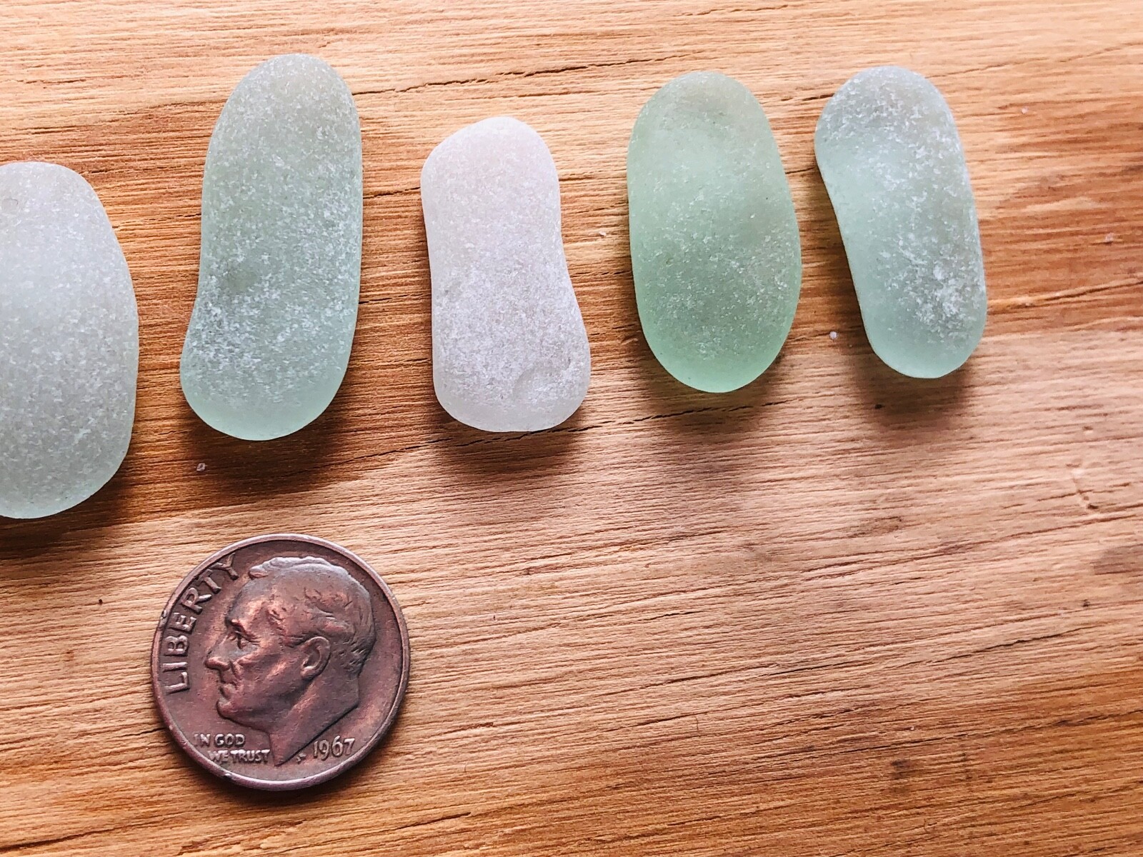 Lot of 6 PERFECT TUBULAR BL GREEN WHITE Surf-Tumbled Genuine SEA Beach Glass Med