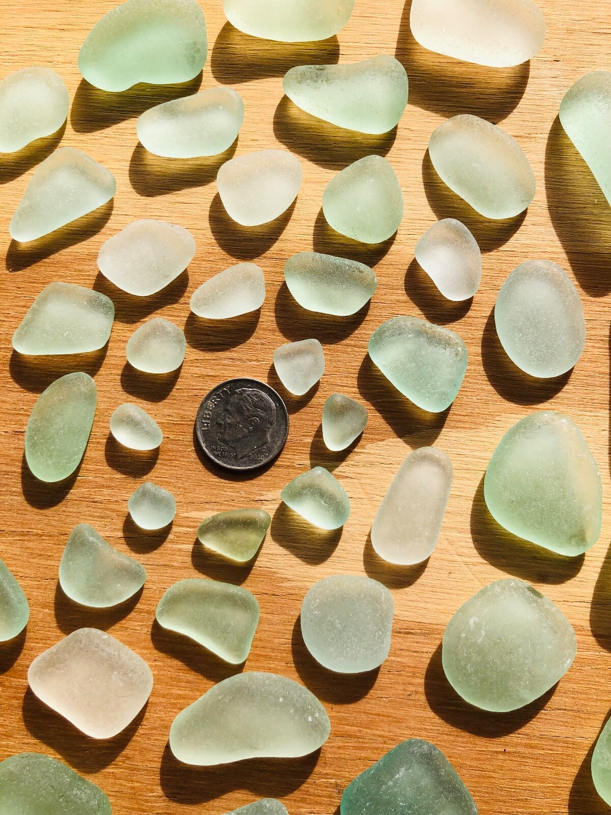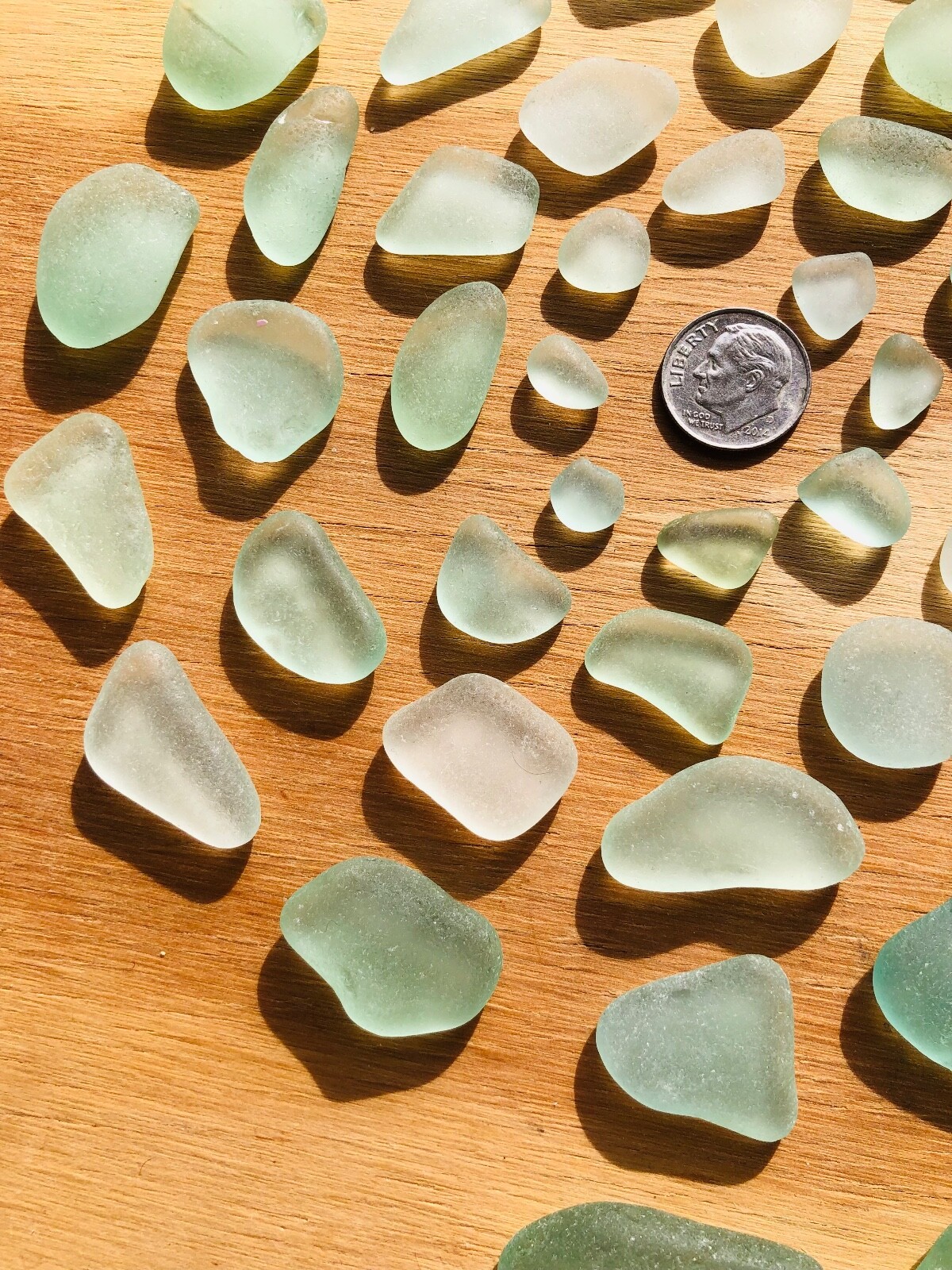 Lot of 50 GORGEOUS LIGHT GREENS Surf-Tumbled Genuine SEA Beach Glass JEWELRY