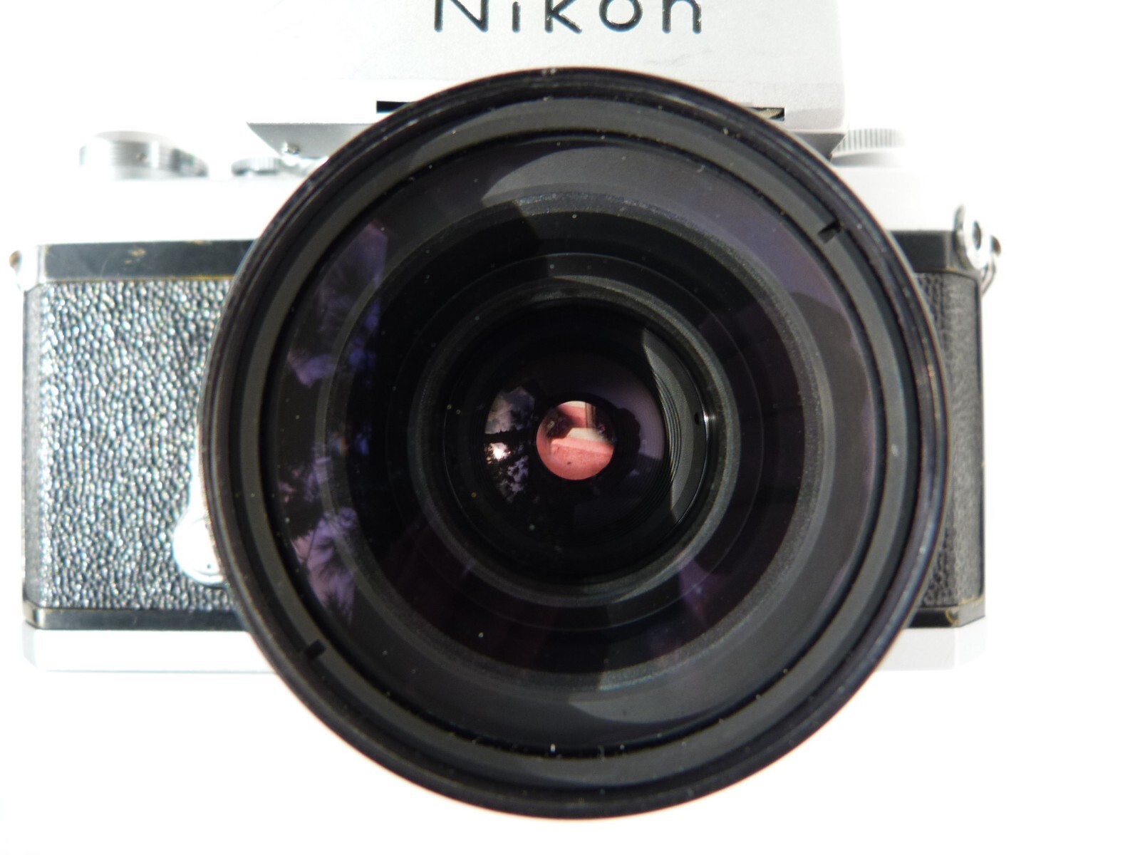 как выглядит Nikon F chrome, T Prism 35mm Film Camera with NIKKOR H Auto 28/3.5 lens.READ фото