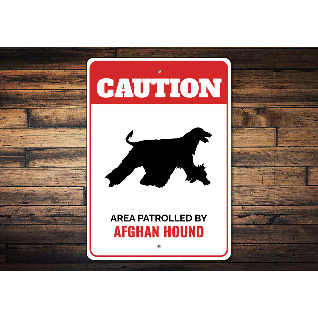 Patrolled By Afghan Hound Caution Metal Sign Dog Kennel Pet Breed Canine K9 Paw