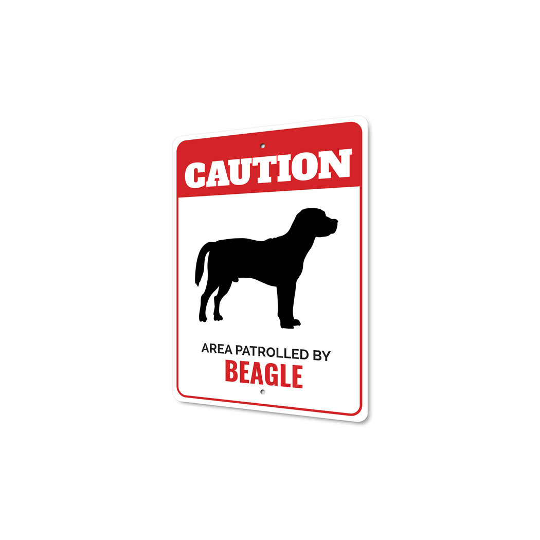 Patrolled By Beagle Caution Metal Sign Kennel Breed Canine K9 Paw Animal Pet
