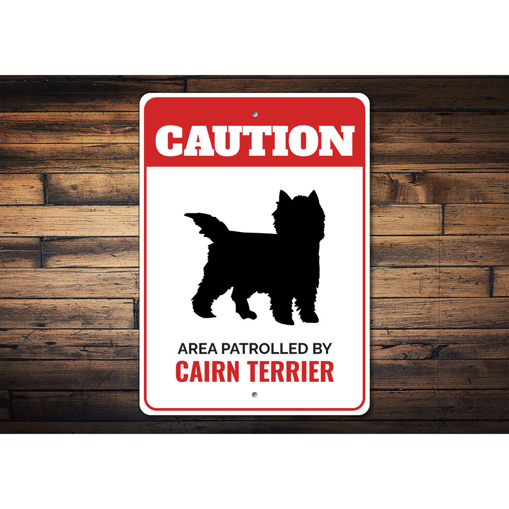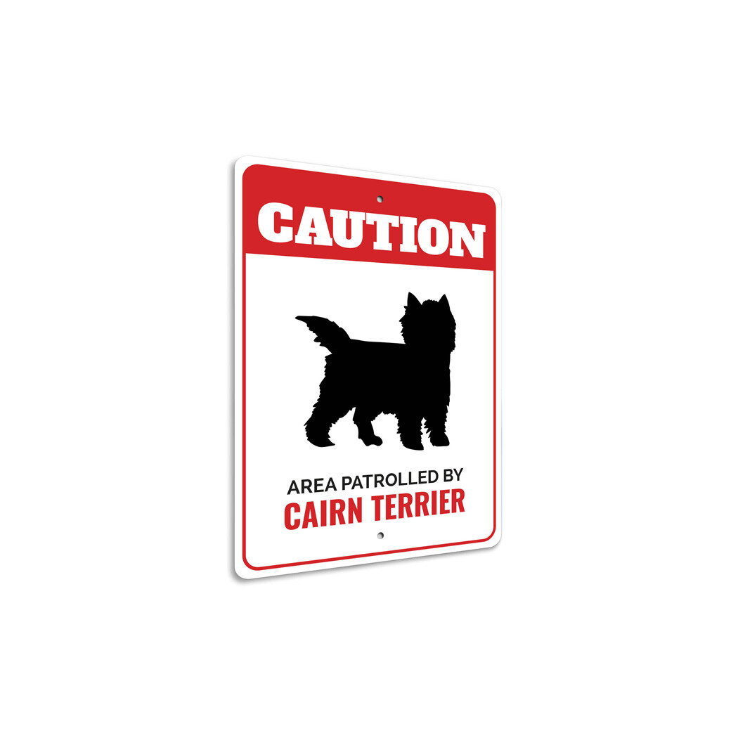 Patrolled By Cairn Terrier Caution Metal Sign Dog Kennel Pet Breed Canine K9 Paw