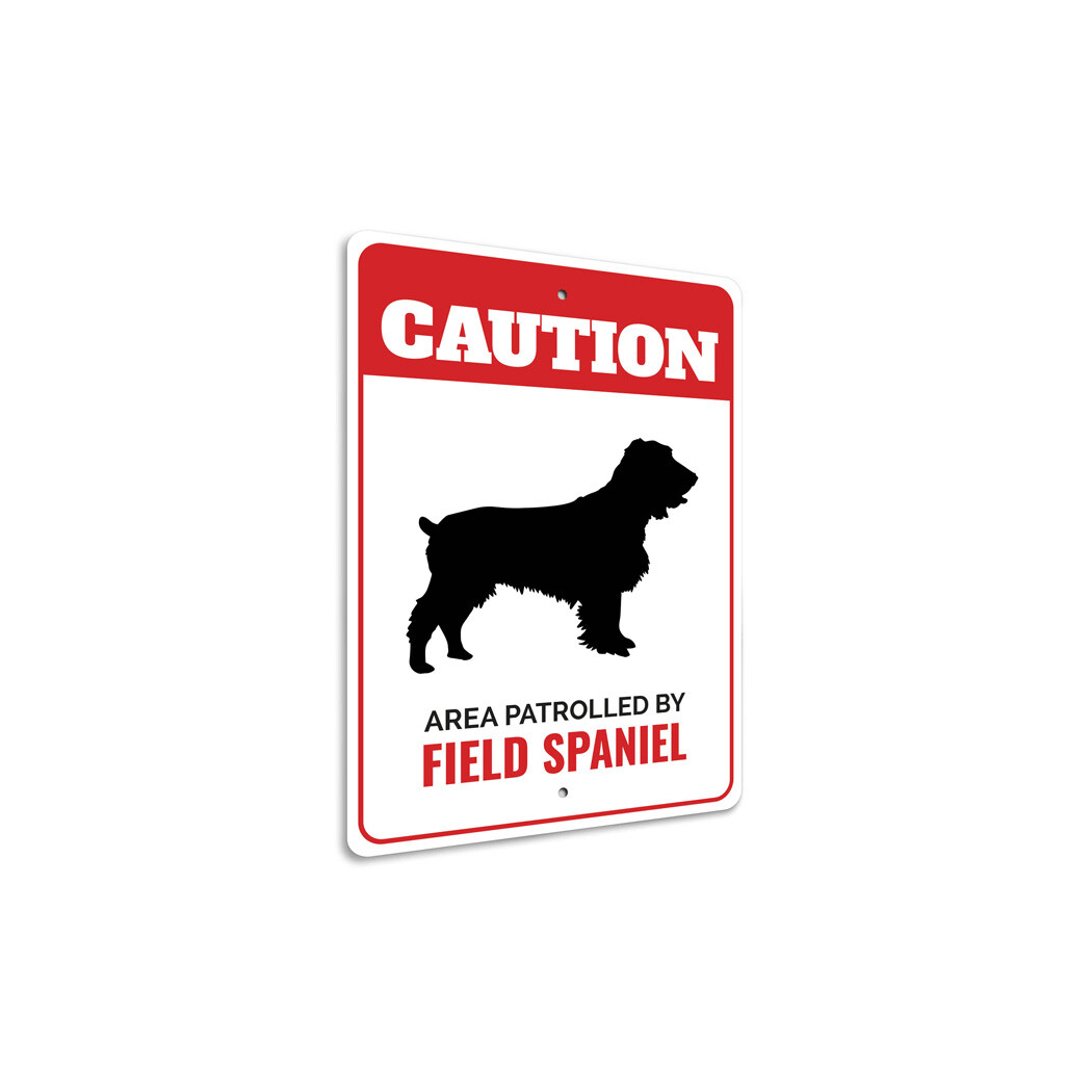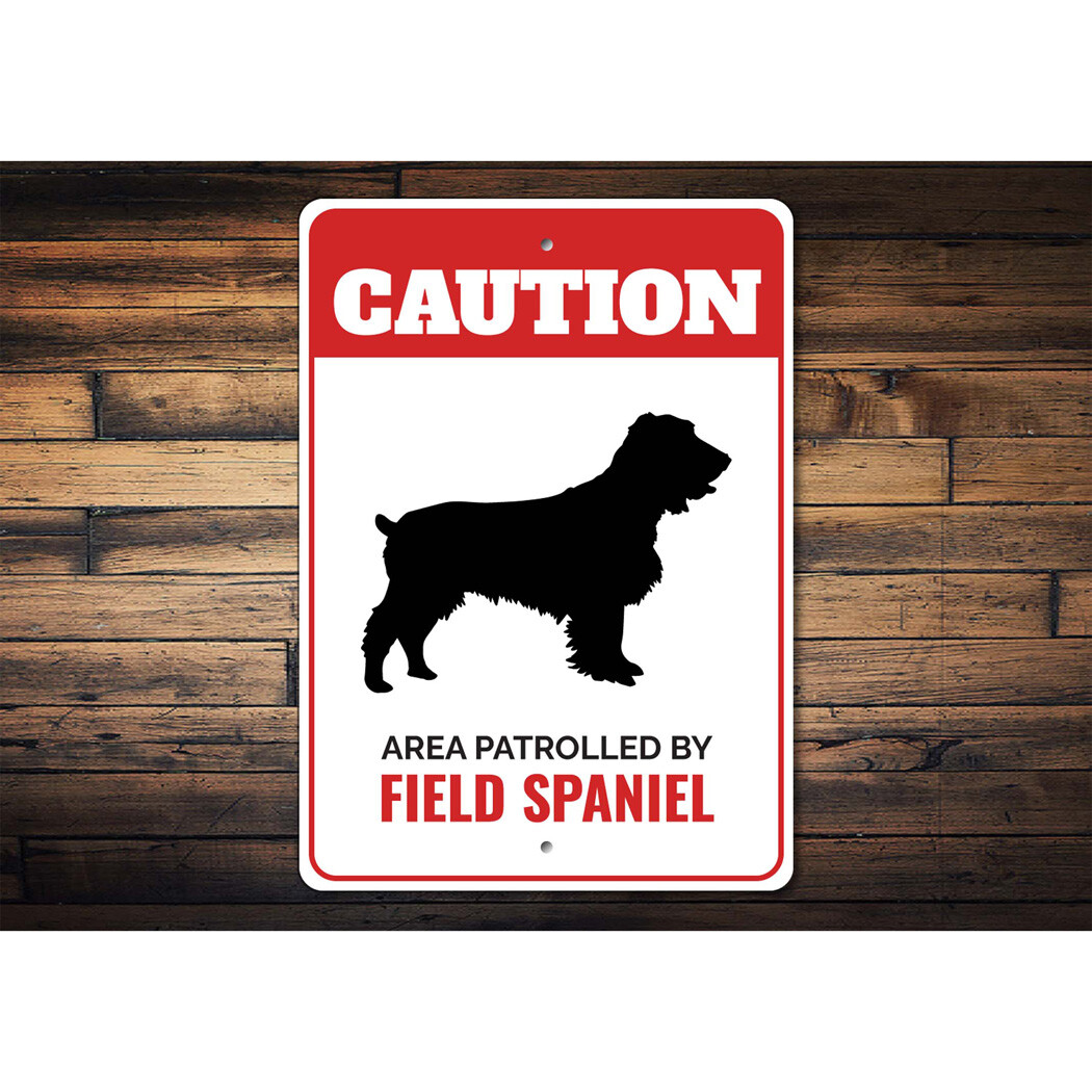 Patrolled By Field Spaniel Caution Metal Sign Dog Kennel Pet Breed Canine K9 Paw
