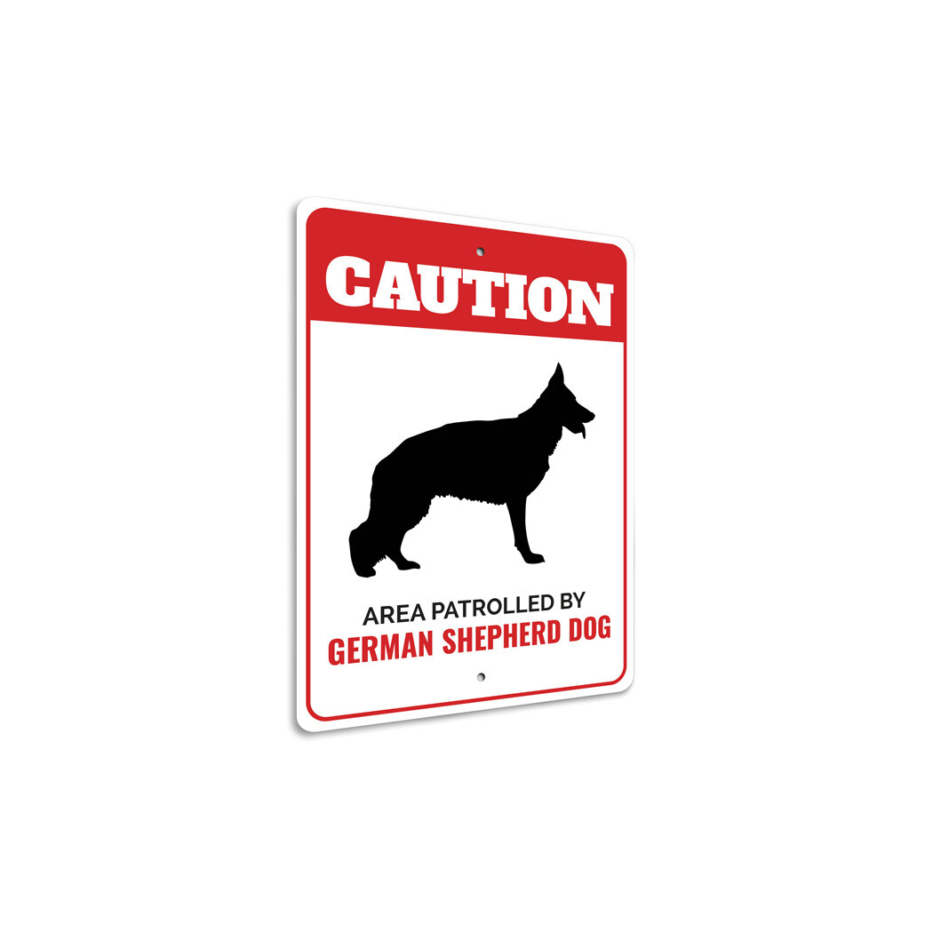 Patrolled By German Shepherd Dog Caution Metal Sign Warning Pet Animal Canine K9