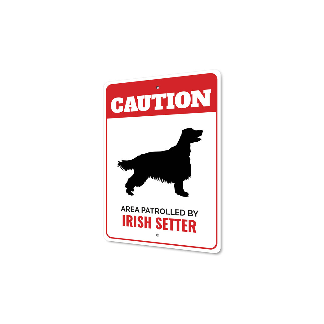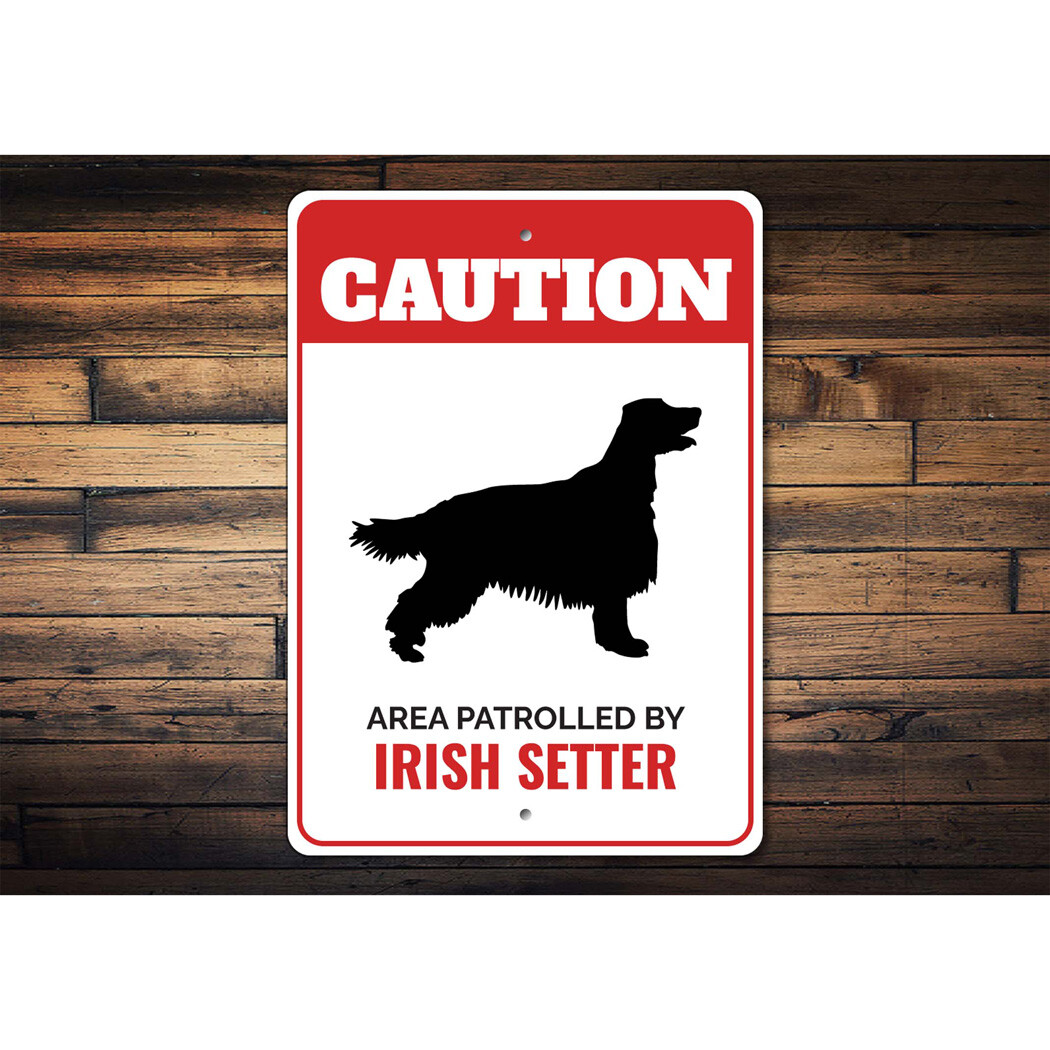 Patrolled By Irish Setter Caution Metal Sign Dog Kennel Pet Breed Canine K9 Paw