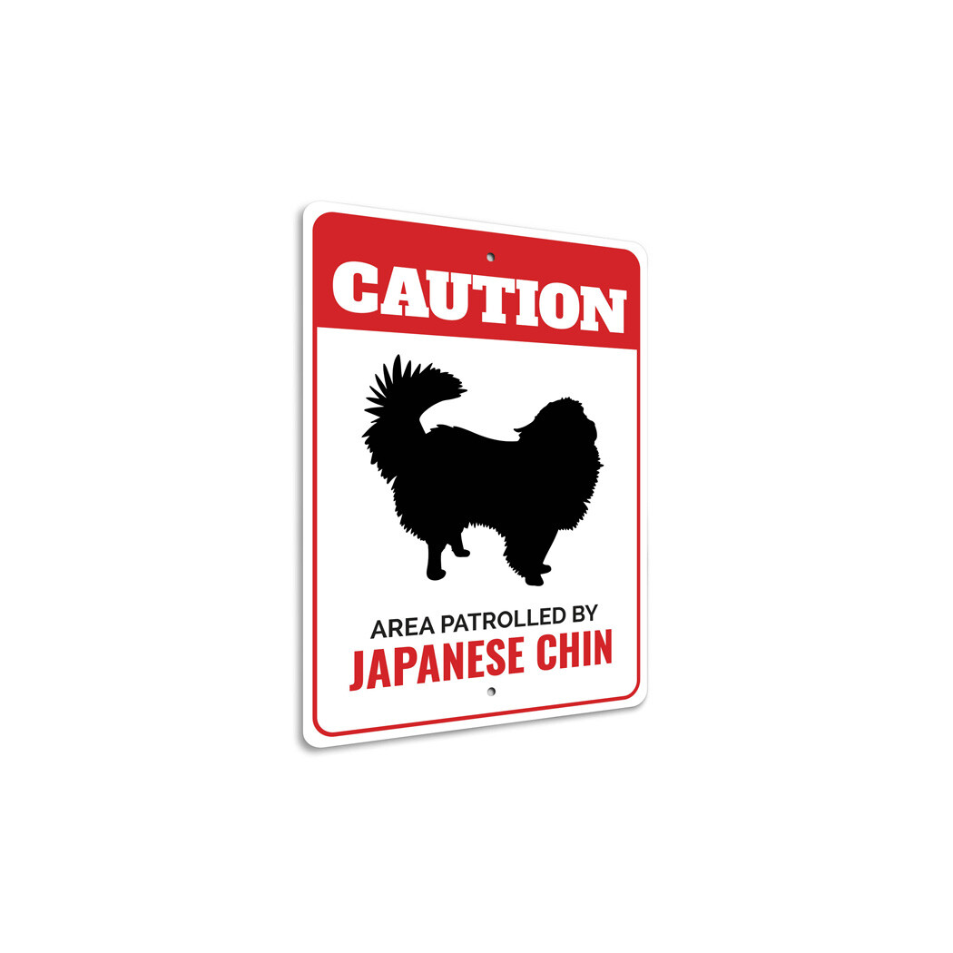 Patrolled By Japanese Chin Caution Metal Sign Dog Kennel Pet Breed Canine K9 Paw