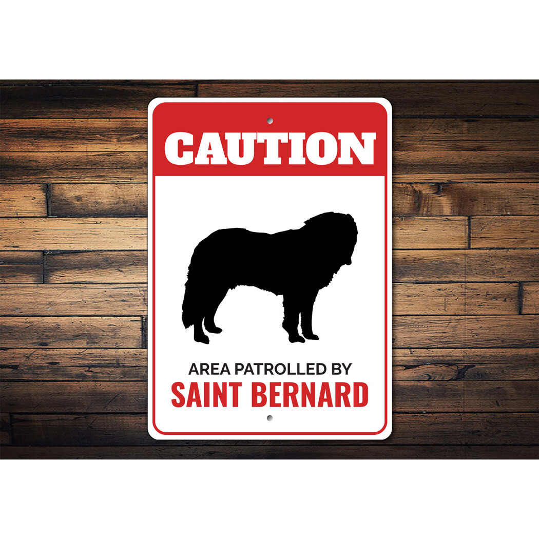 Patrolled By Saint Bernard Caution Metal Sign Dog Kennel Breed Canine K9 Paw Pet