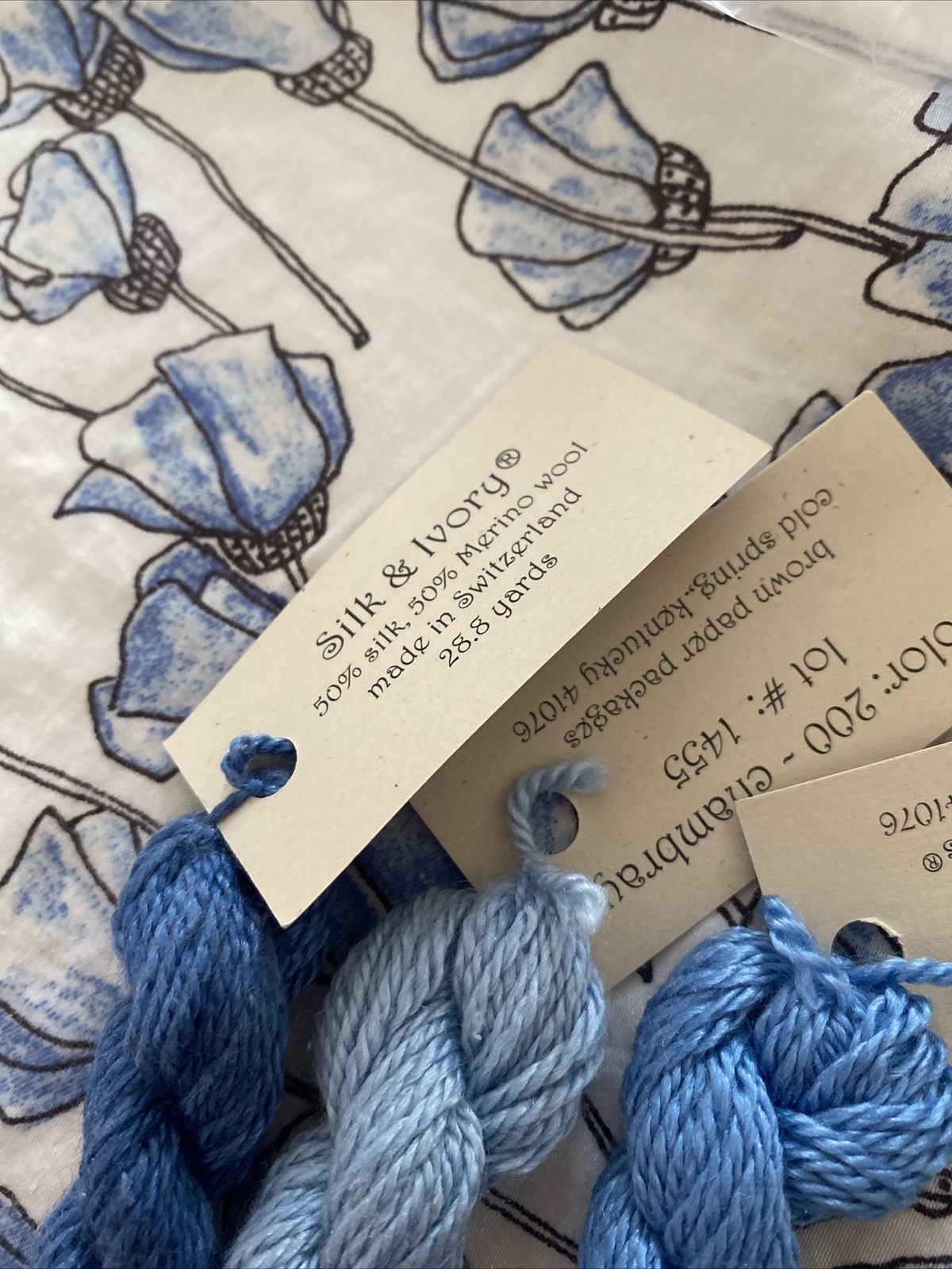 как выглядит New Silk and Ivory Needlepoint Yarn blue Lot "ahoy " chambray 28.8 Yd фото