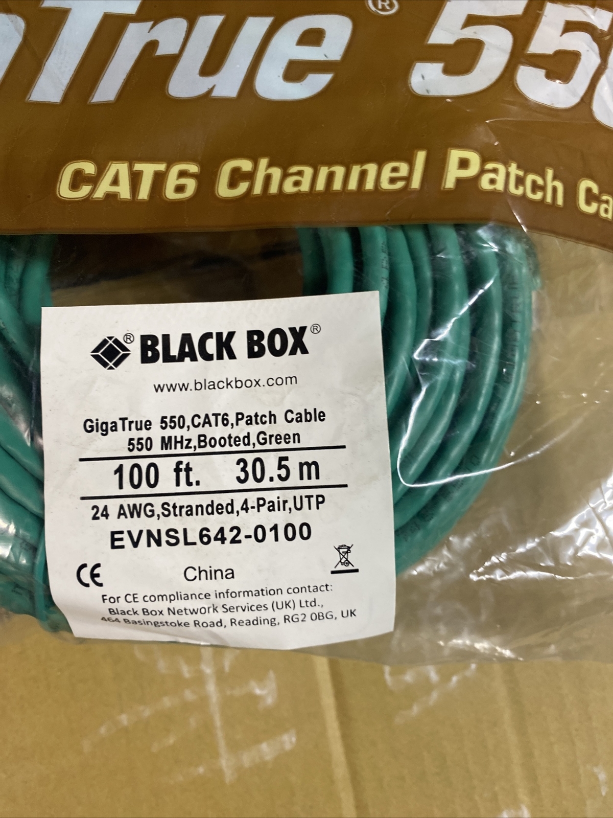 как выглядит GigaTrue 550, 24 AWG CAT6 Patch Cable 550MHz booted Green, 100ft. EVNSL642-0100 фото