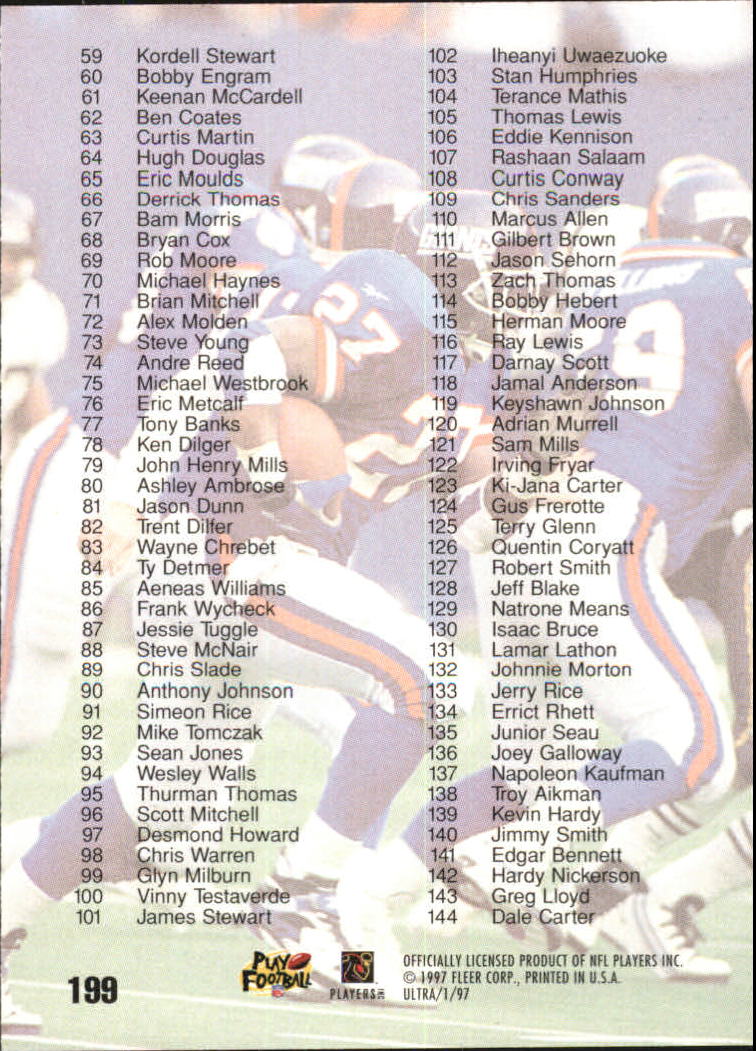 B3284- 1997 Ultra Football Card #s 1-350 +Inserts: #199 Checklist - NM-MT