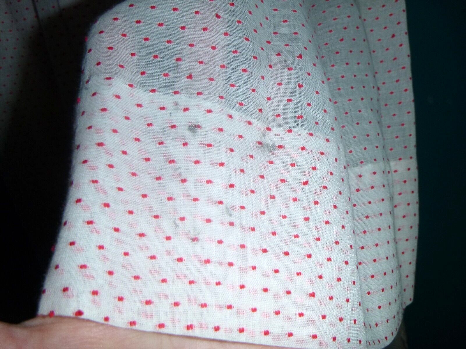 как выглядит Vtg 50s Sheer Cotton Dotted Swiss Dots Dress Red White Smocked Bodice Sz 18 mo фото