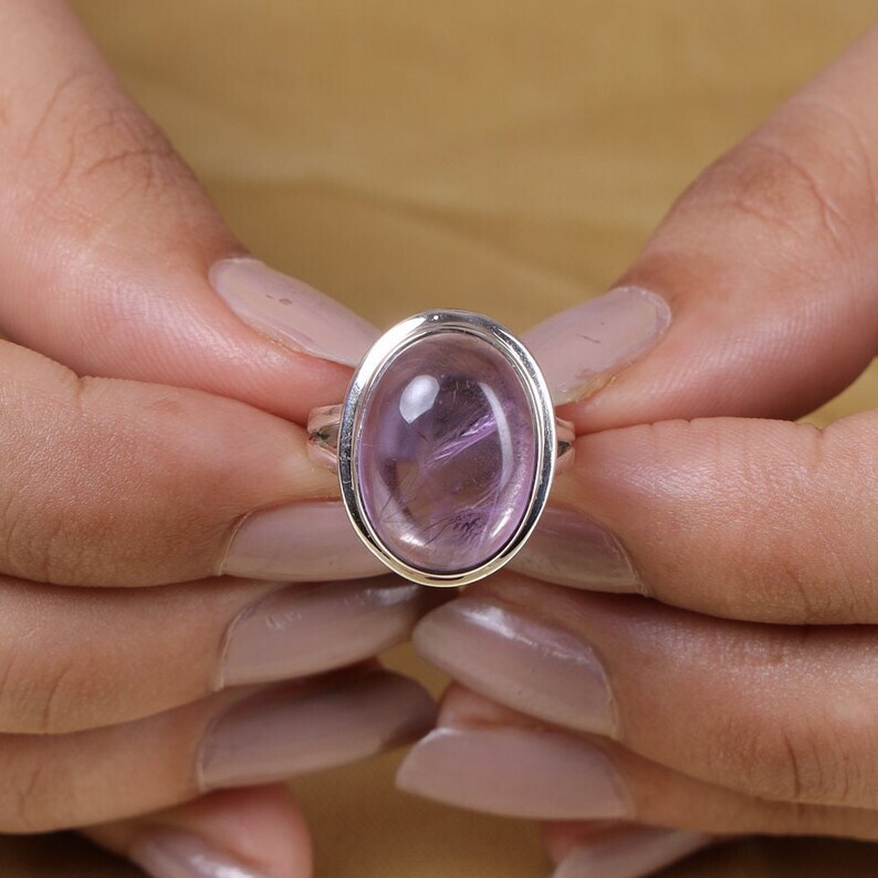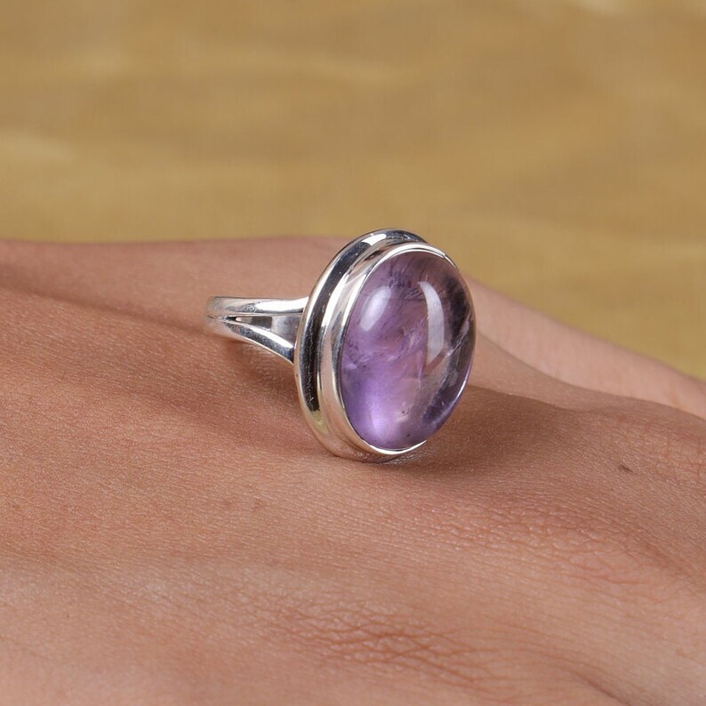 Amethyst Solid 925 Sterling Silver Band Statement Ring Handmade Ring All size
