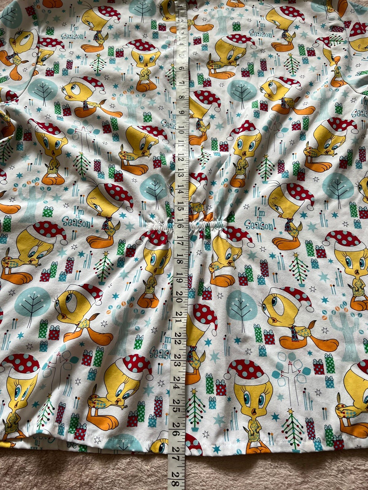 Looney Tunes Tweety Christmas Holiday Scrubs Women's White Top Sz 2X