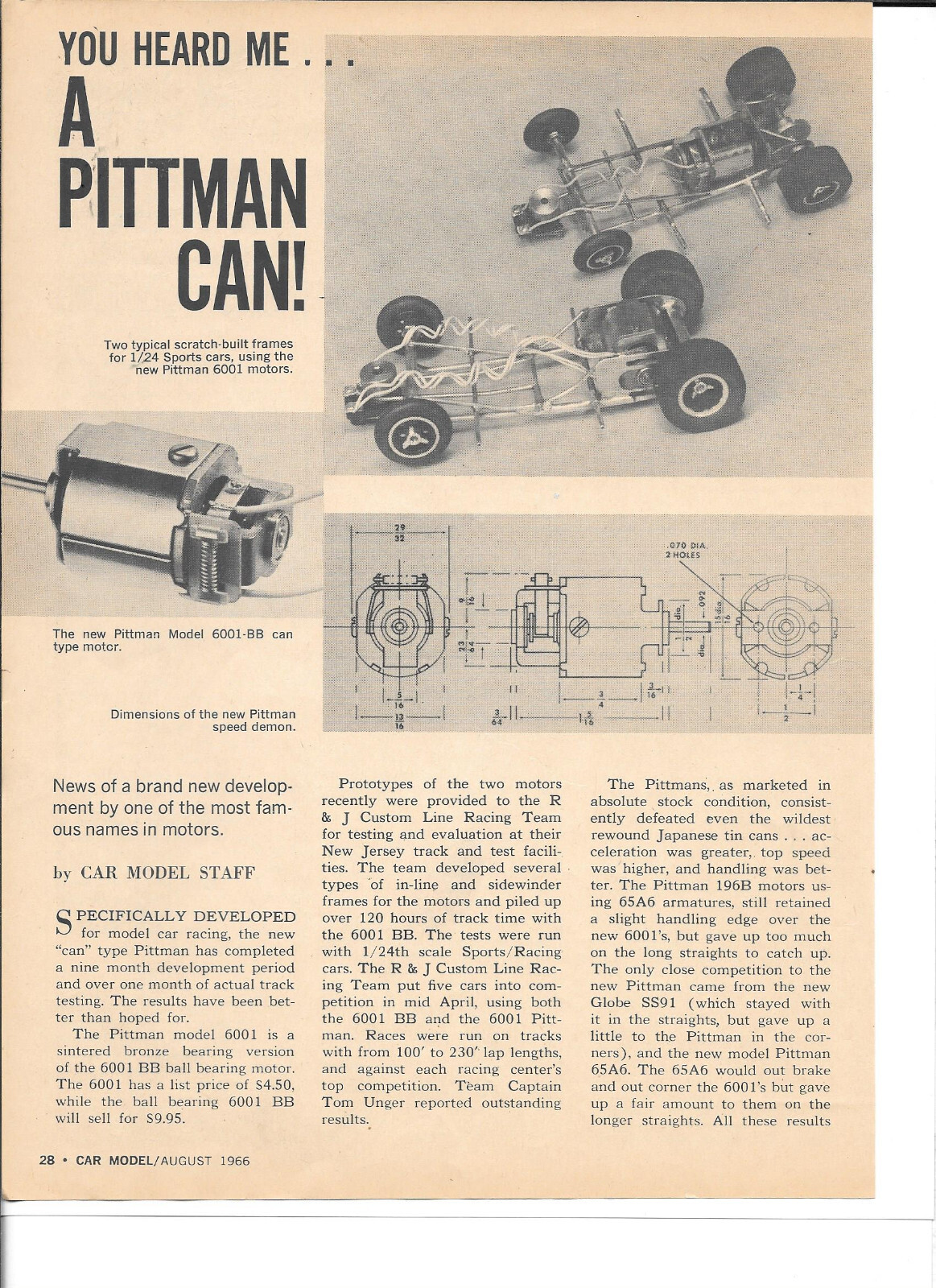 Pittman Slot Car Can Motor Model 6001-BB Vintage Magazine Ads PHOTOCOPY