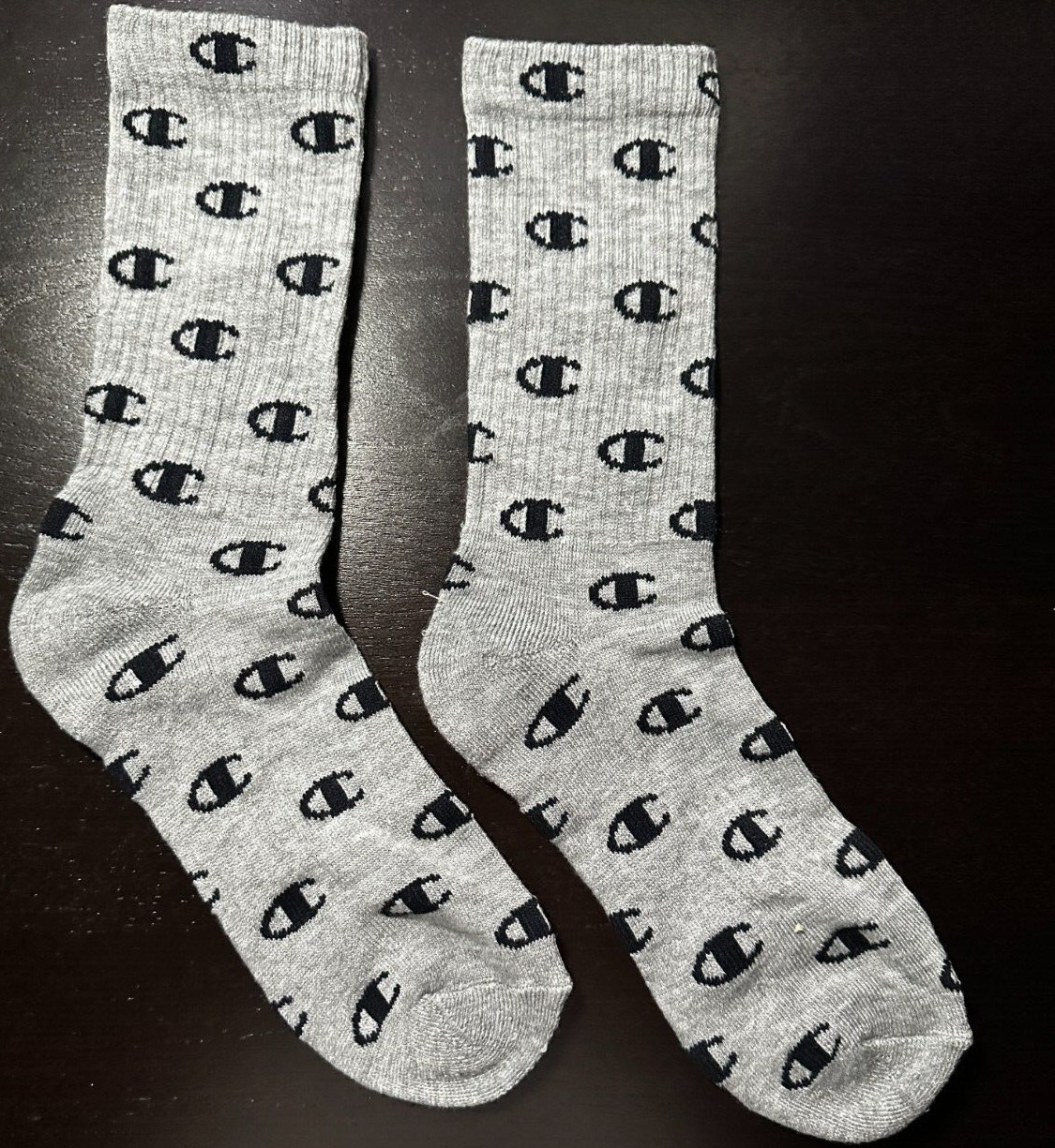Champion Logoed Crew Socks Single Pair Gray Repeat, Youth Shoe Size 5Y-7Y