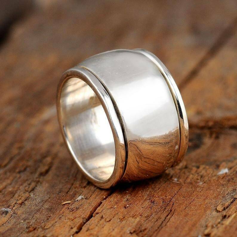 как выглядит Solid 925 Sterling Silver Wide Band Spinner Ring Handmade ring All Size-T-15 фото
