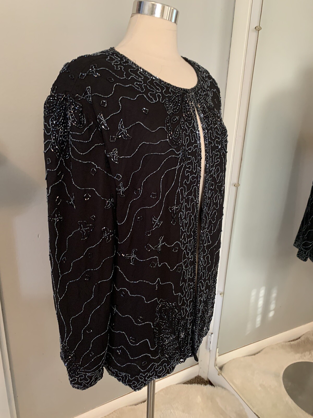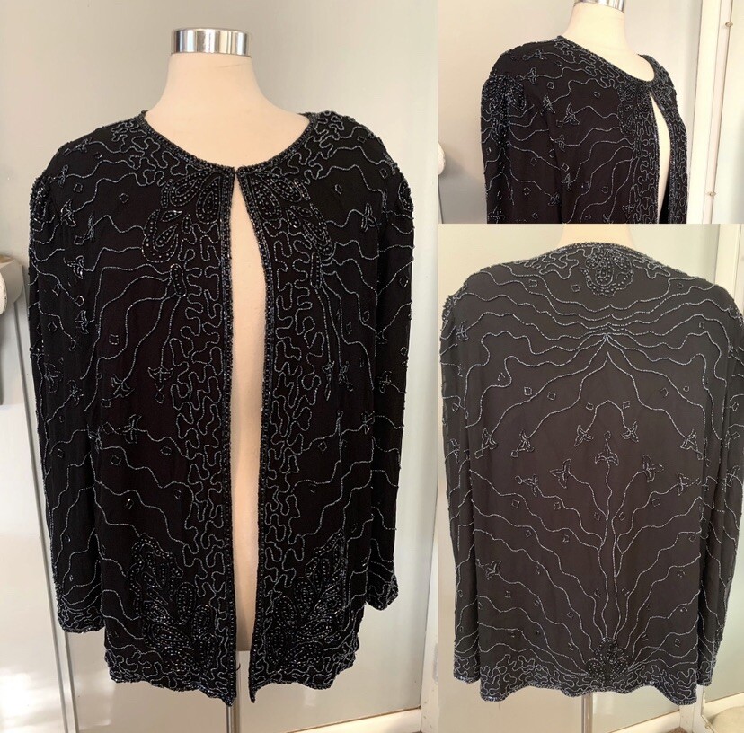 как выглядит 2XL Black Beaded Evening Cocktail Jacket 2X Vintage Glam фото