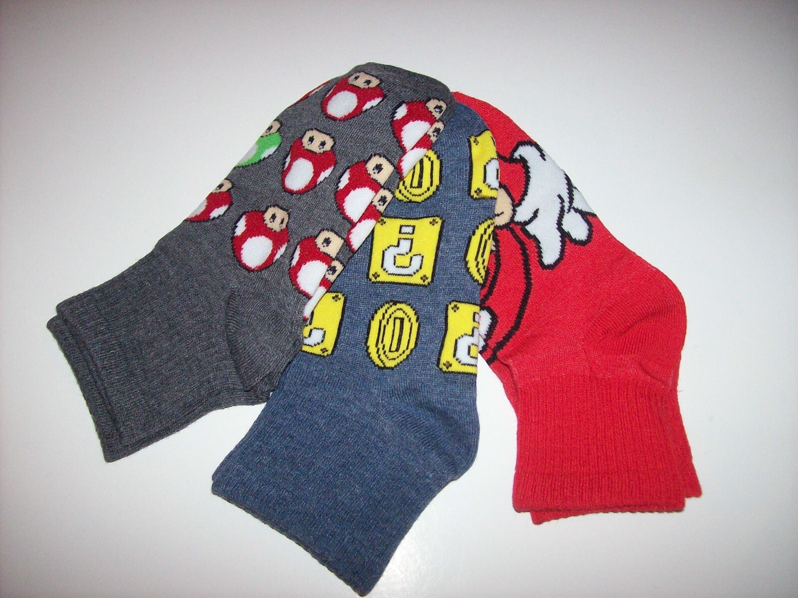 как выглядит Nintendo Mario Socks Boys 3 Quarter Crew Large 3Y-5Y New фото