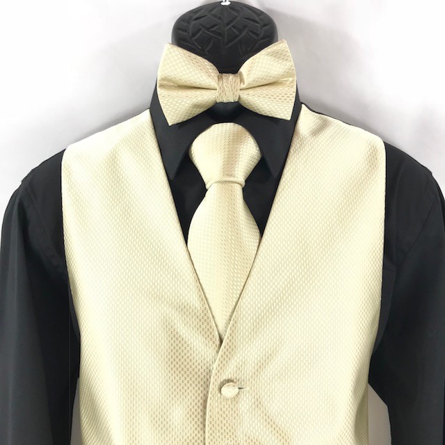 Bruno Piattelli Roma Men's Beige Tuxedo Formal 4 Piece Vest Tie Bow Tie Hanky