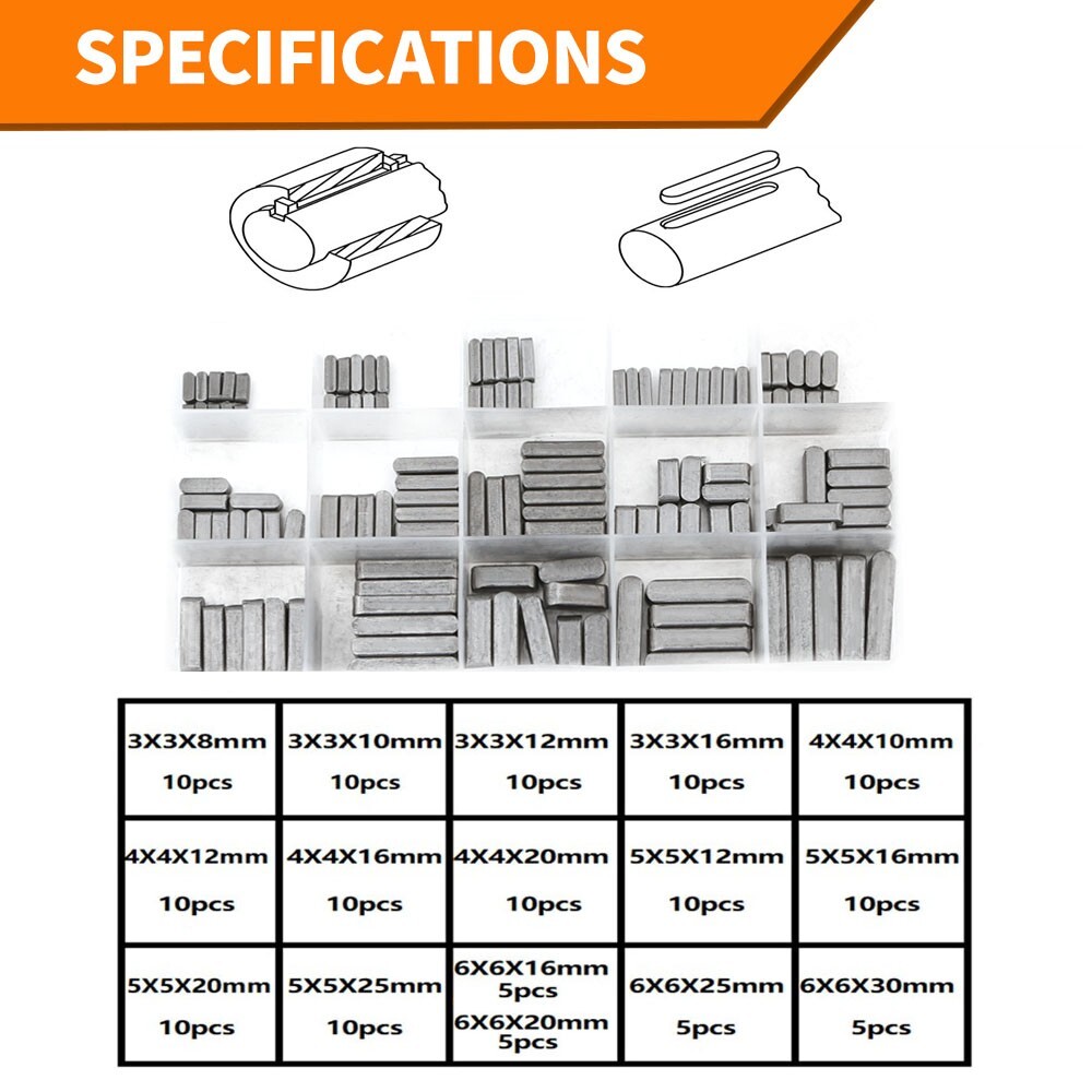 140Pcs Round Ended Feather Key Drive Shaft Parallel Keys Assortment 8-30mm NEW