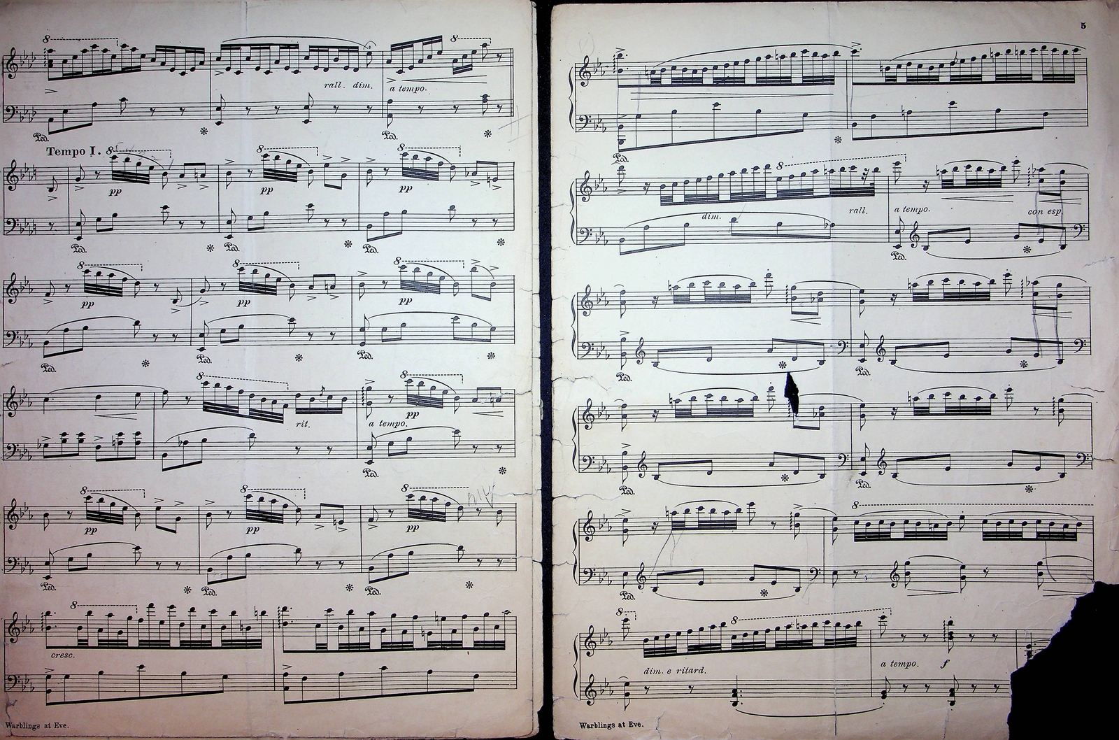 Warblings At Eve Romance Vintage Sheet Music B Richards Piano Y
