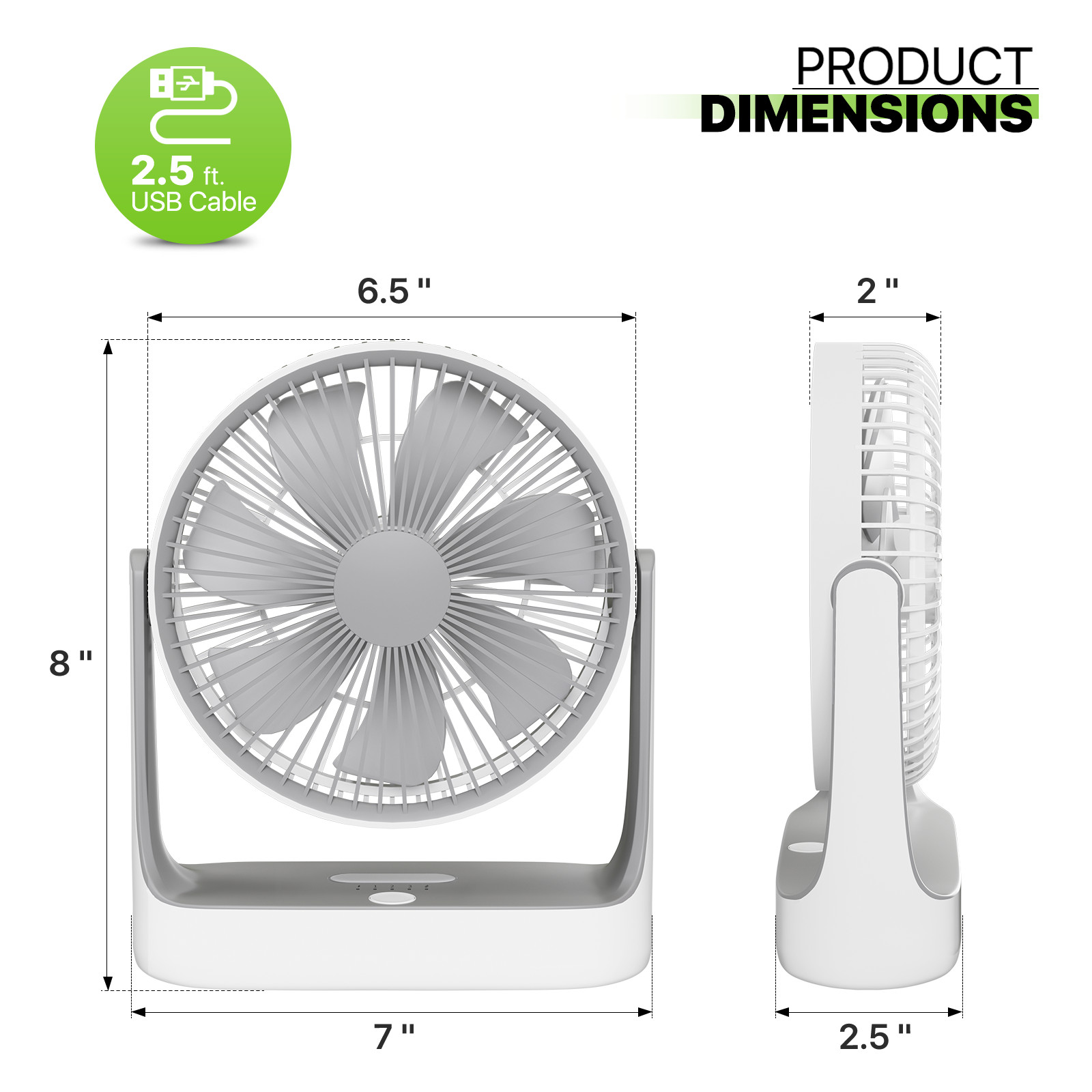 Portable 180 Tilt Personal Desk Fan 4 Speed USB Rechargeable Fan w/Hanging Hook