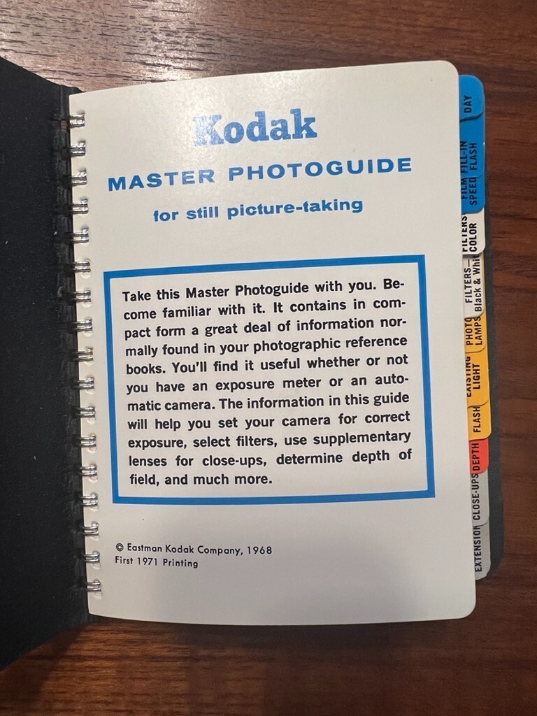 Kodak Master Photoguide Photography Pocket Guide, AR-21, 1971