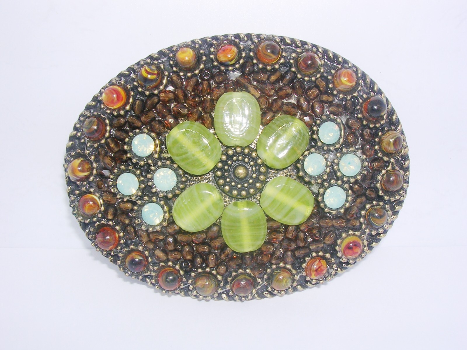 как выглядит Belt Buckle Western Style Multi Color Beads Brass Finish фото