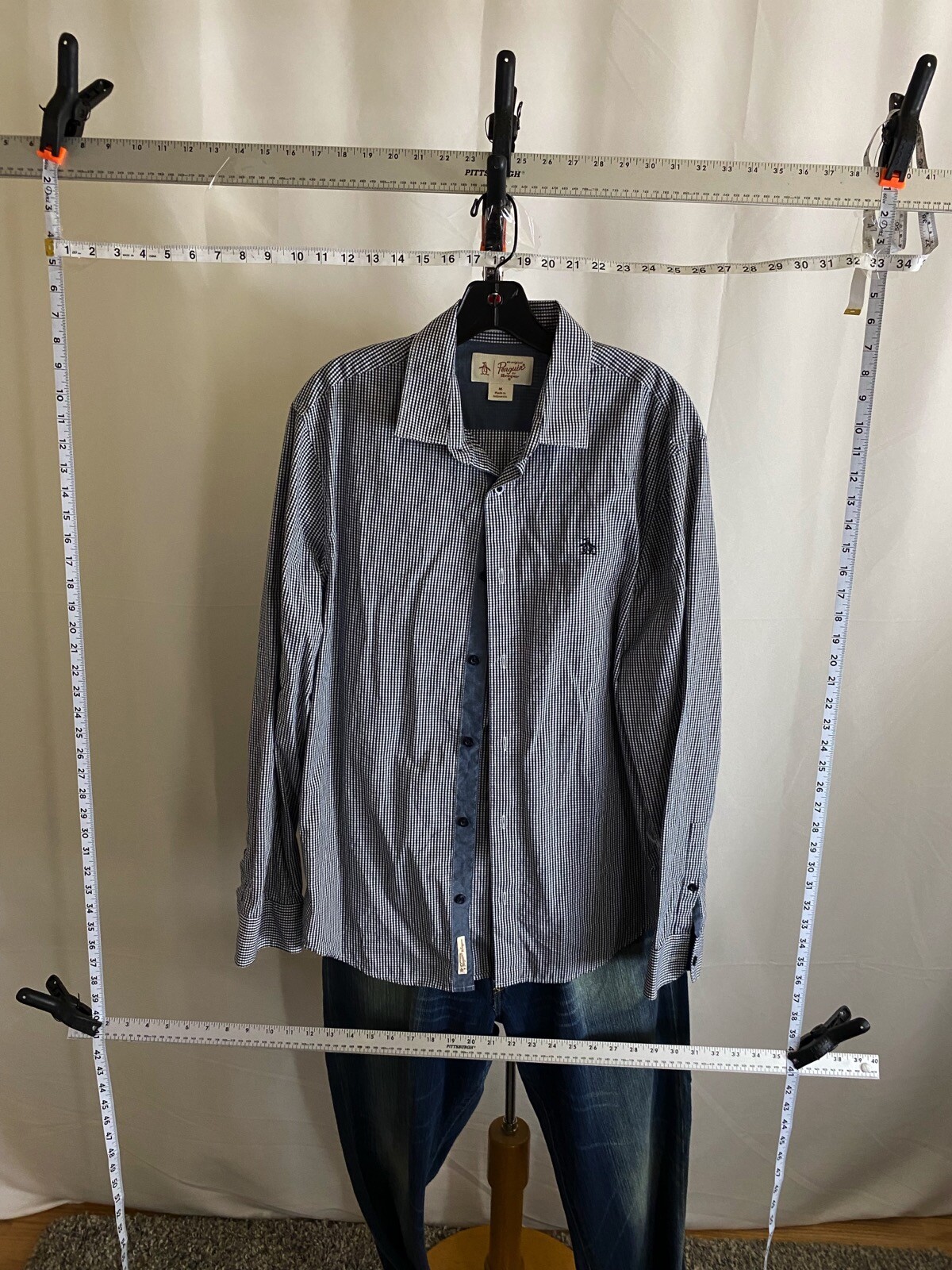 как выглядит Penguin Gray Check LONG SLEEVE SHIRT Medium M 15.5 x 33/34 фото
