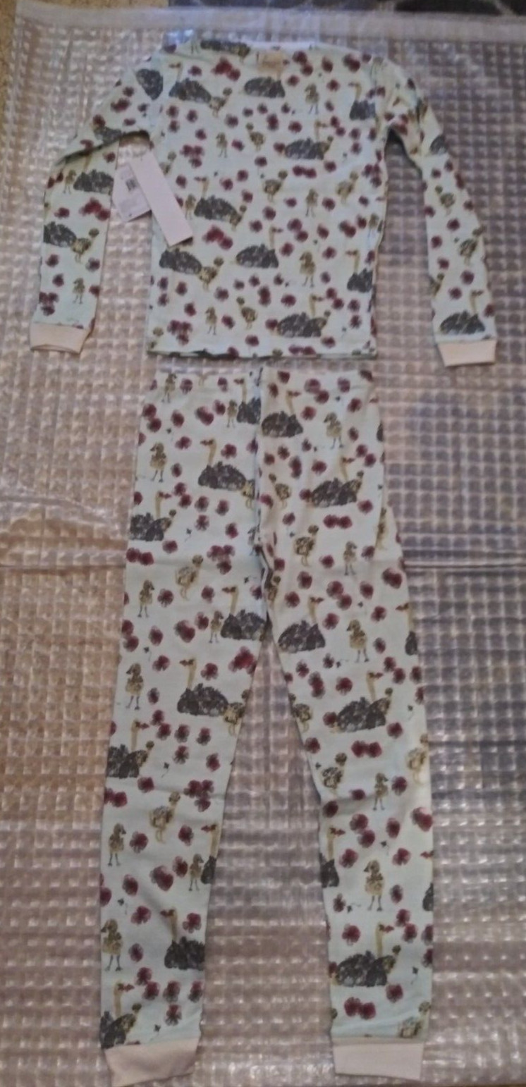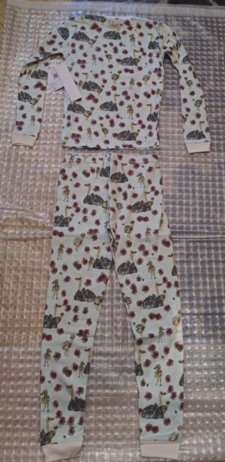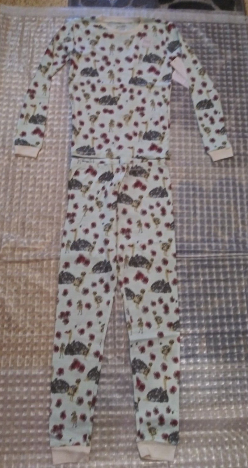 Burts Bees Kids Size 12 Mint Ostrich/Flowers Long Sleeve Pajamas 2pc