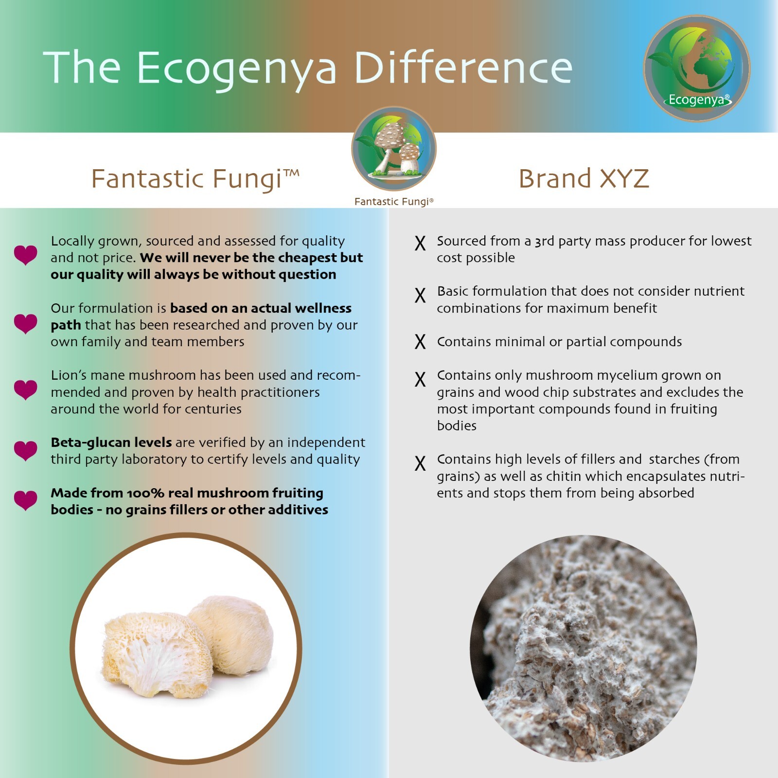 Food Grade, Organic, Gluten-Free, Non-GMO, Vegan, Dairy-Free, Nut-Free, Immune Support, Digestive Health, Measured Beta-Glucans |