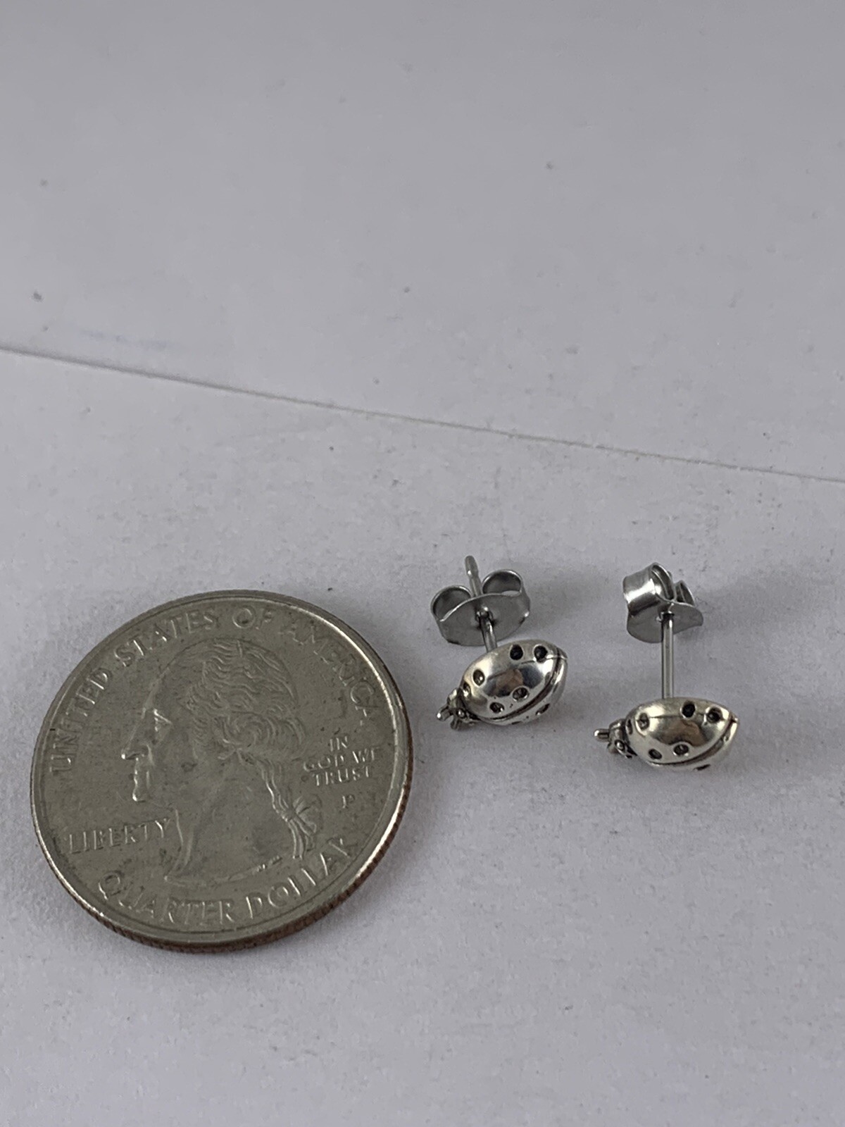 как выглядит Sterling Silver Small Lady Bug Stud Post Pierced Earrings 9mm x 6mm фото