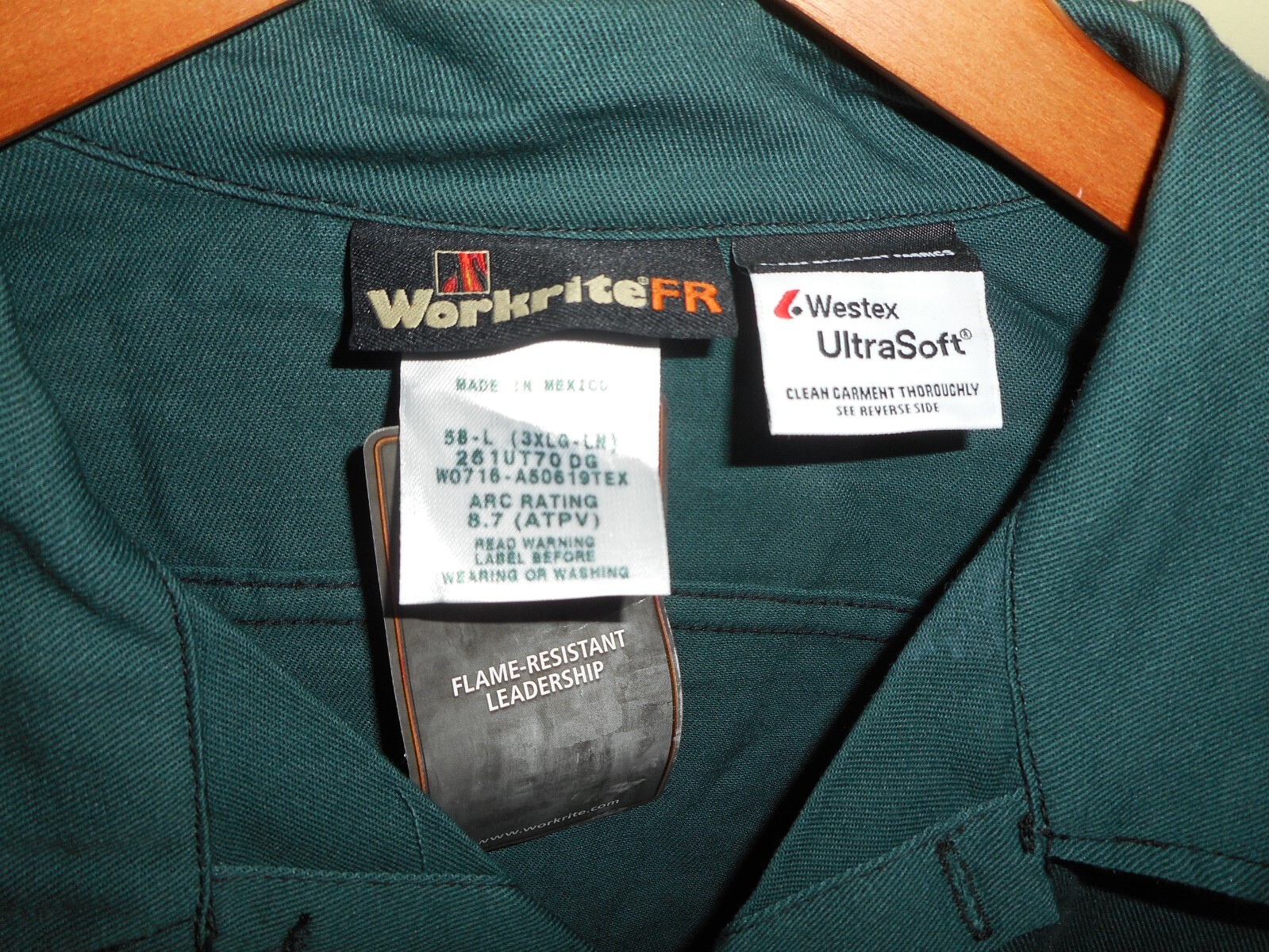 как выглядит Workrite FR Shirt - Mens 3XL SizeTag 58L - Flame Resistant CAT2 - GREEN - NWOT фото