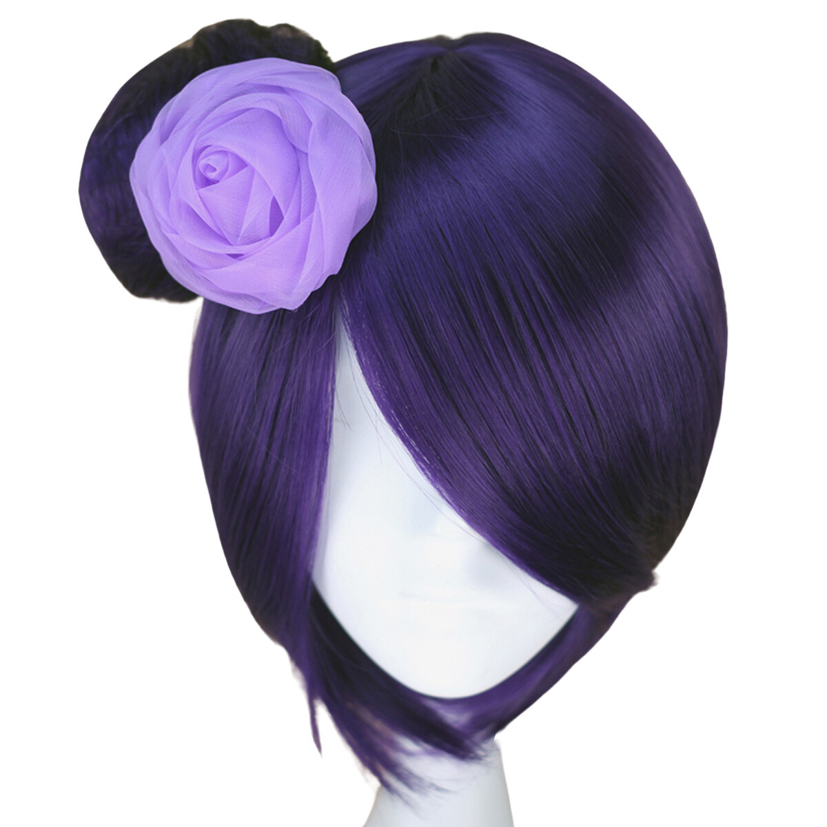 как выглядит Rolecos Anime Naruto Short Purple Konan Hair with Flower Halloween Role Play Wig фото