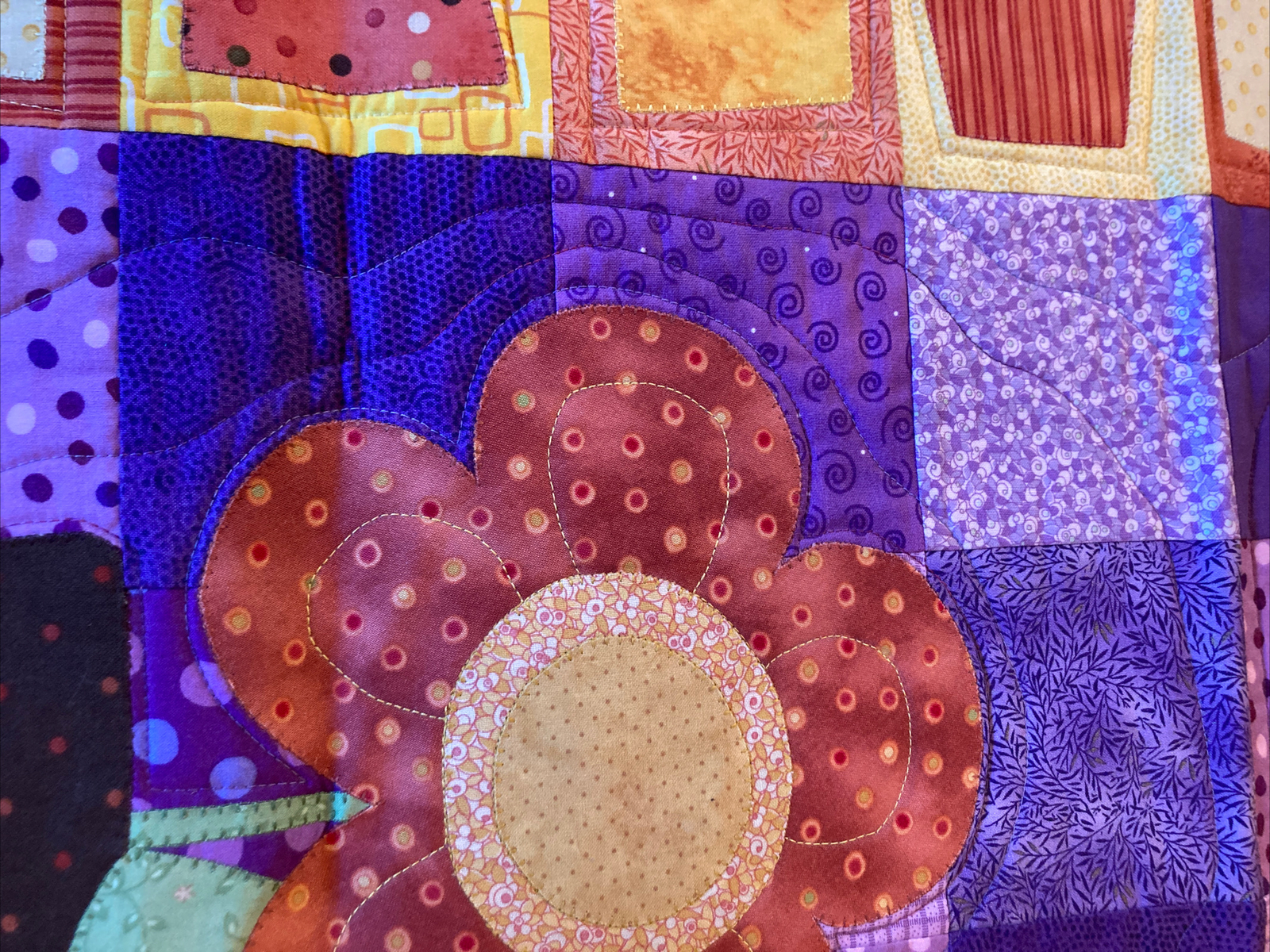 как выглядит Handcrafted Handmade Machine Quilted Table Runner Wall Hanging Excellent фото