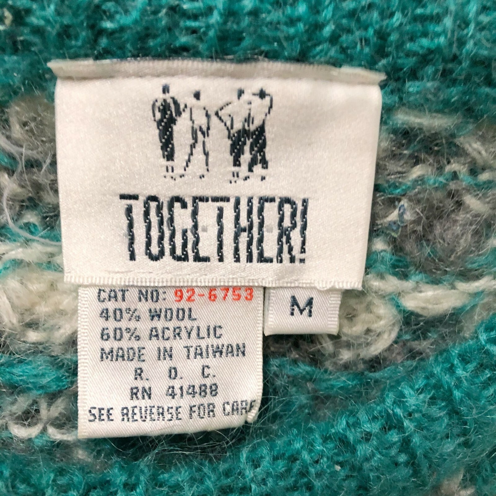 Womens Vintage 80s Together Geometric Wool Blend Oversize Sweater Size M Medium
